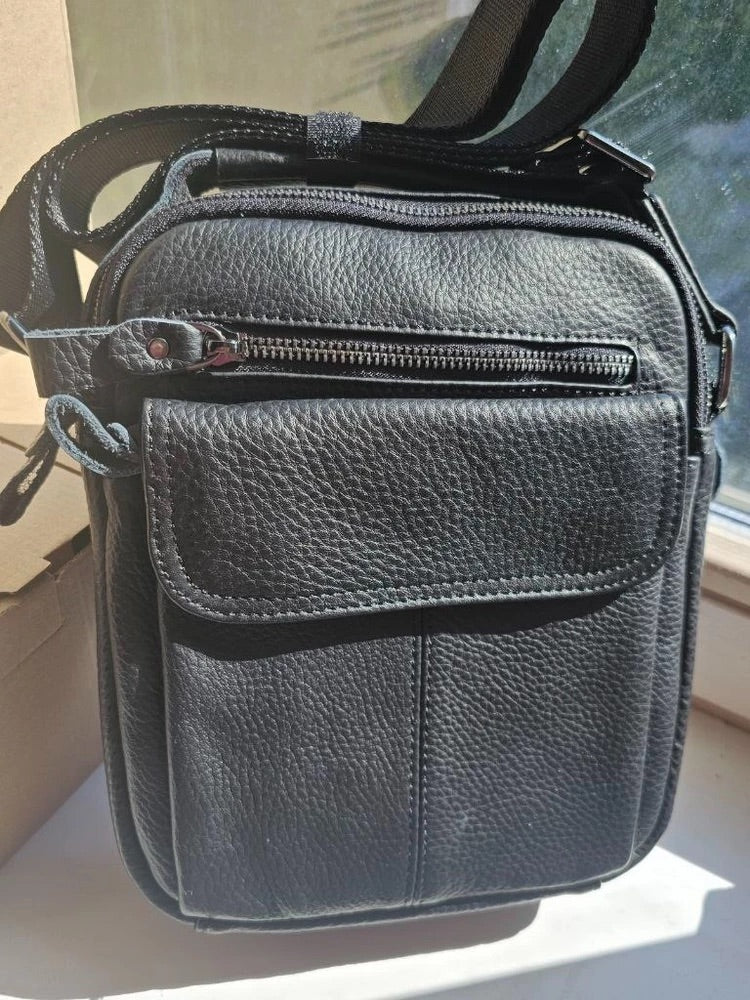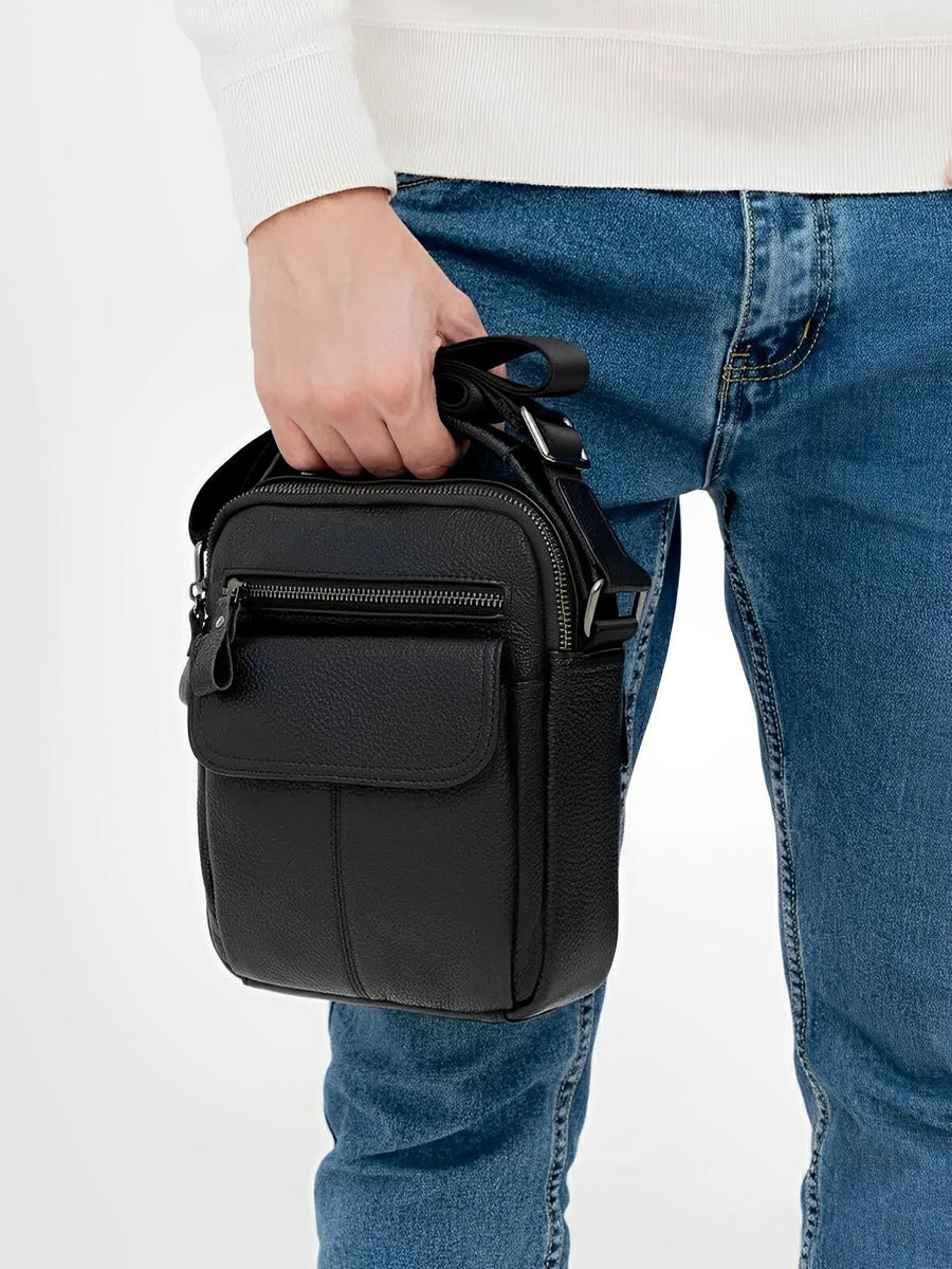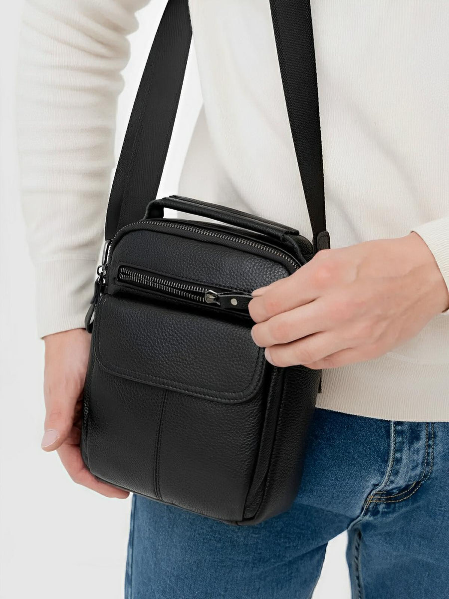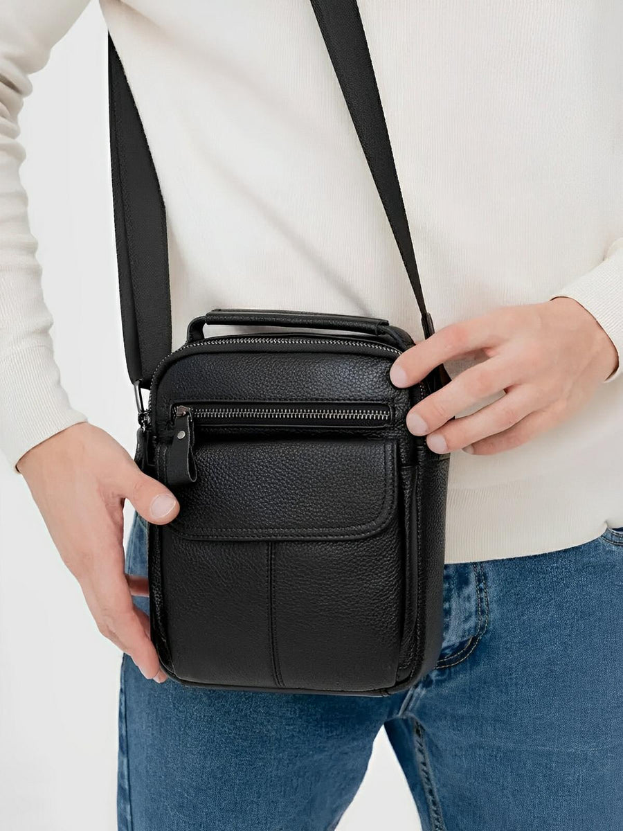 Borsa a tracolla da uomo in vera pelle, tracolla regolabile, design compatto, ideale per l’uso quotidiano, modello Césaire