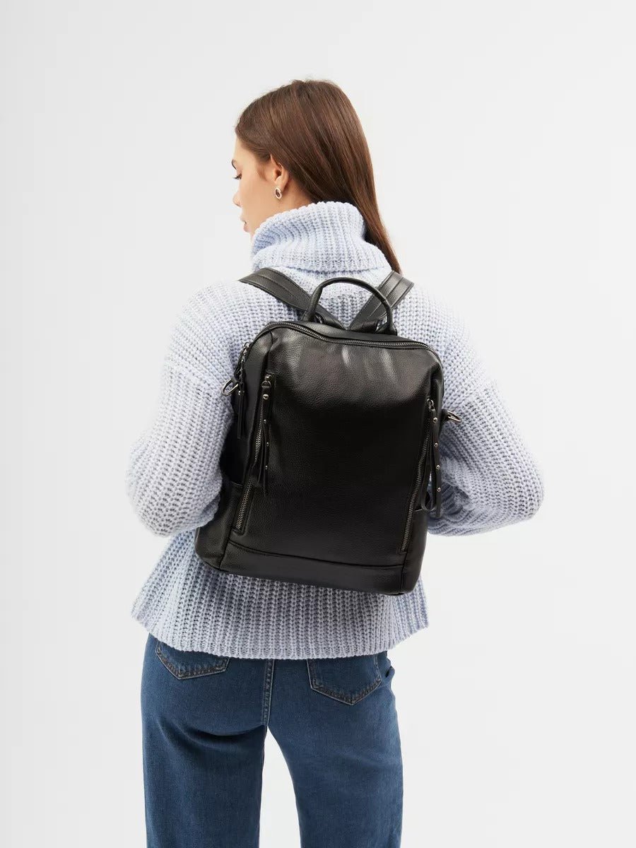 All’esterno, due tasche verticali con chiusura lampo e una tasca posteriore discreta aggiungono funzionalità. Il materiale sintetico morbido effetto pelle è piacevole al tatto e mantiene una bella forma anche quando lo zaino è pieno.