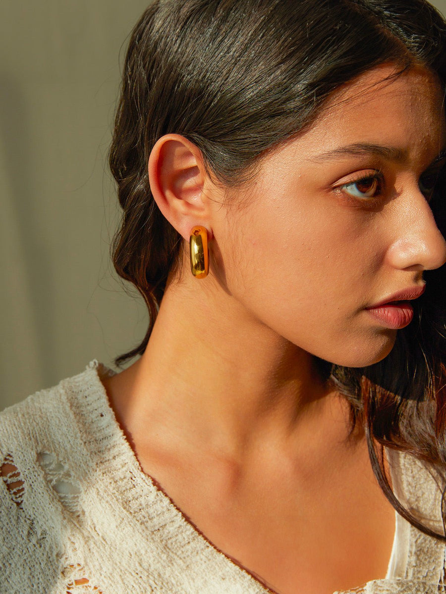 La loro forma spessa e cava garantisce una sensazione di leggerezza nonostante il volume. La chiusura a farfalla assicura una tenuta confortevole e sicura per tutto il giorno. Questi orecchini sono perfetti sia per valorizzare un outfit semplice che per accompagnare capi più audaci.