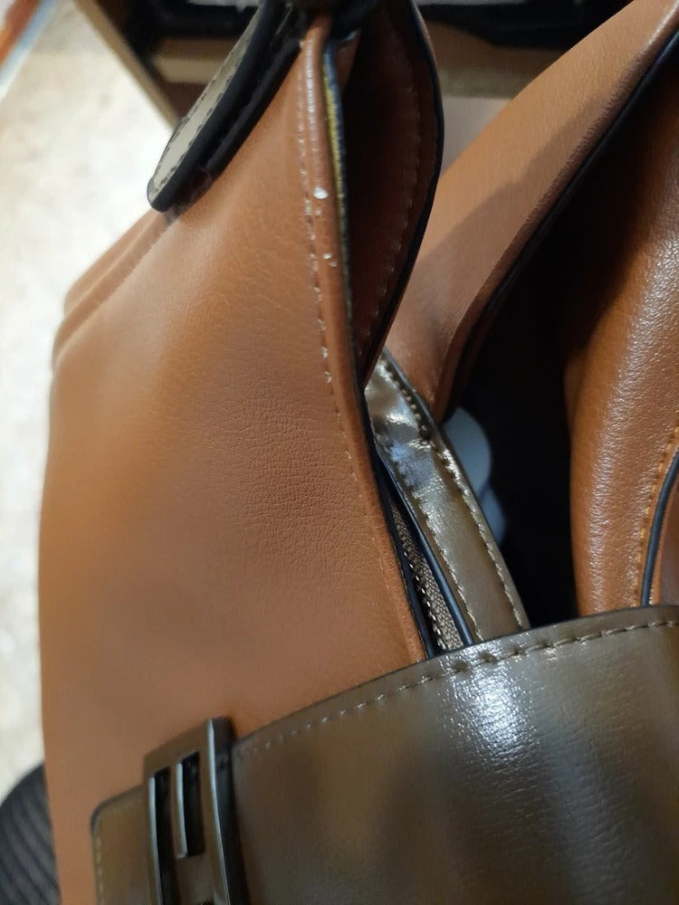 Adottate uno stile raffinato con questa borsa a mano dal design rétro e dalle linee essenziali. Realizzata in similpelle vegana di alta qualità, offre una texture elegante con impunture decorative e dettagli metallici discreti. Il suo formato generoso consente di trasportare facilmente tutti i vostri essenziali quotidiani.