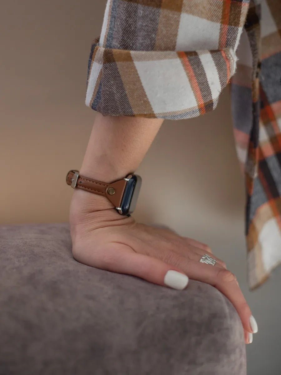 Portate un tocco di stile unico al vostro Apple Watch con questo cinturino in pelle dalla texture morbida e flessibile. Progettato per adattarsi perfettamente ai modelli 38, 40, 41, 42, 44, 45, 46, 49 mm, è compatibile con le serie dalla 1 alla 10 e con la versione SE.