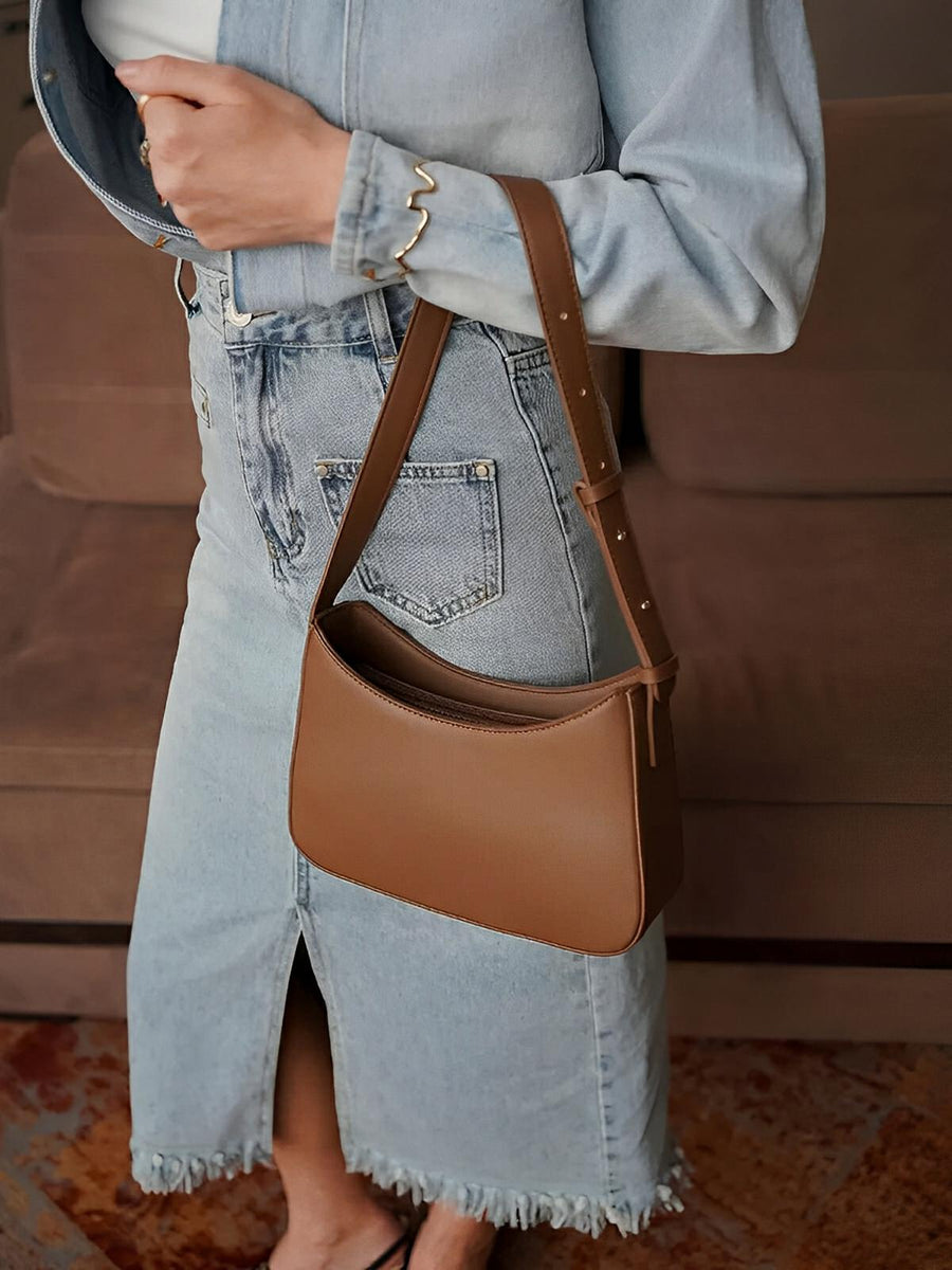 Scegliete una borsa a spalla baguette dal design minimalista che si adatta a tutti i vostri outfit, dalla quotidianità alle occasioni più raffinate. Il suo formato compatto di 25 cm di larghezza consente di riporre gli oggetti essenziali, mantenendo uno stile elegante.