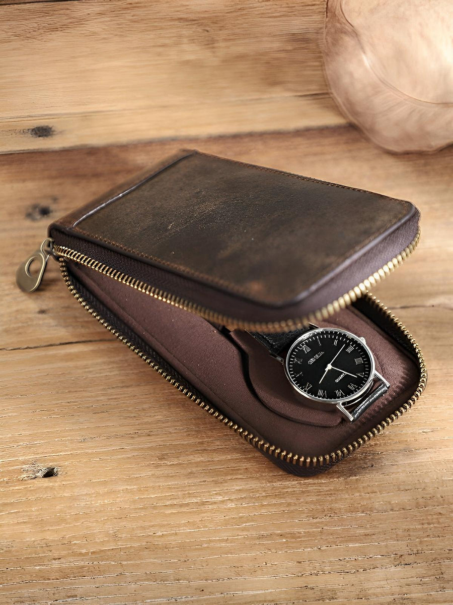 Custodia per orologi in pelle, capacità singola, portacarte integrato, modello Crispin