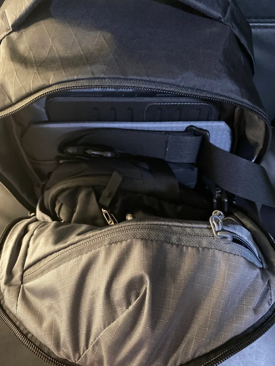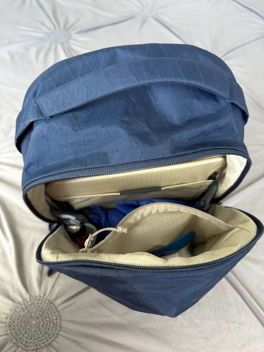 L’interno, sapientemente organizzato, accoglie facilmente un computer portatile fino a 14 pollici, offrendo al contempo scomparti dedicati per i vostri accessori: tablet, penne, cuffie, borraccia… Tutto rimane al suo posto, anche in movimento.