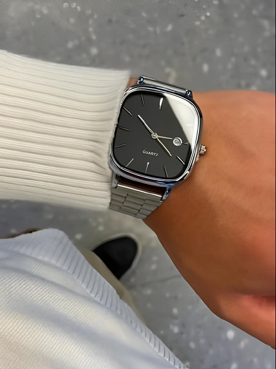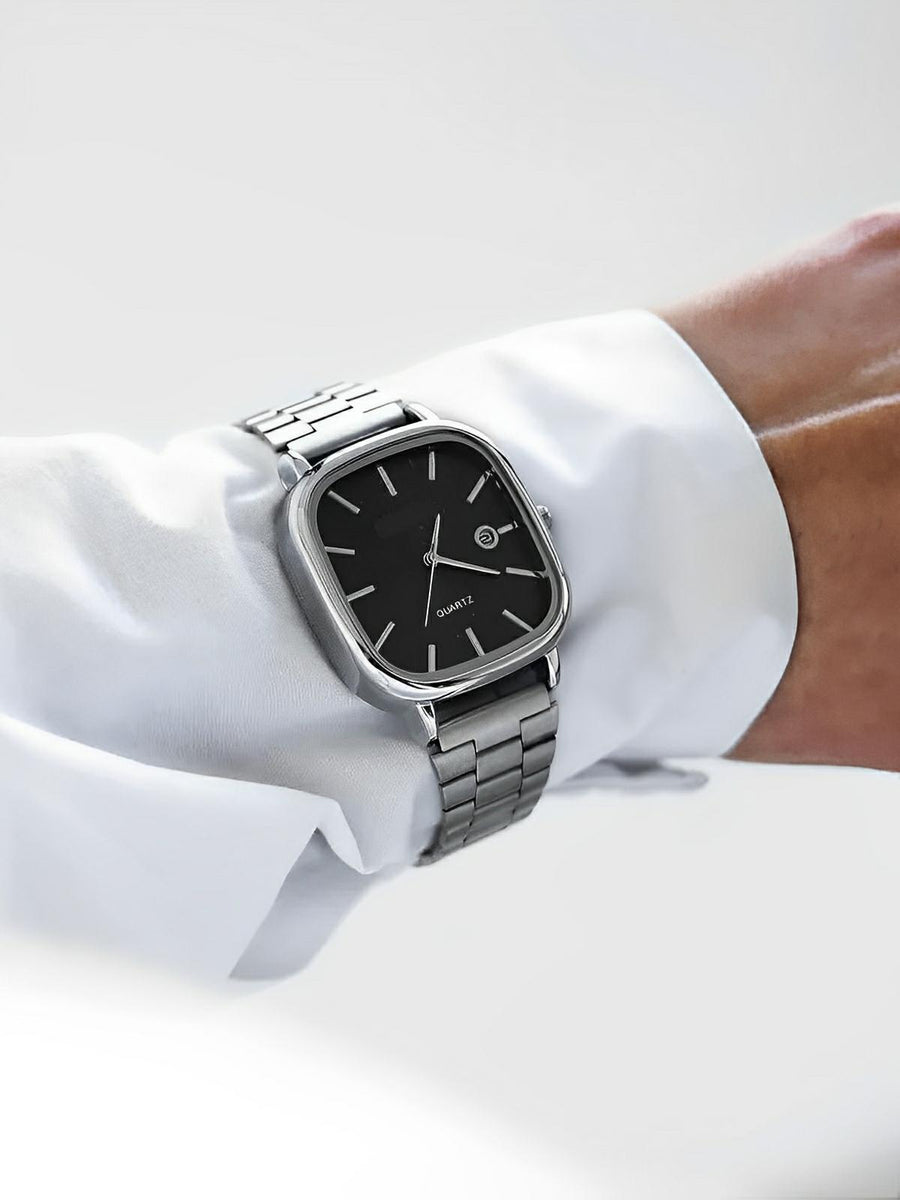 Scoprite un orologio da uomo dal design raffinato che unisce robustezza ed eleganza per l’uso quotidiano. Il suo quadrante quadrato dona uno stile unico, perfetto sia per abbinarsi a tenute classiche che a look più moderni.
