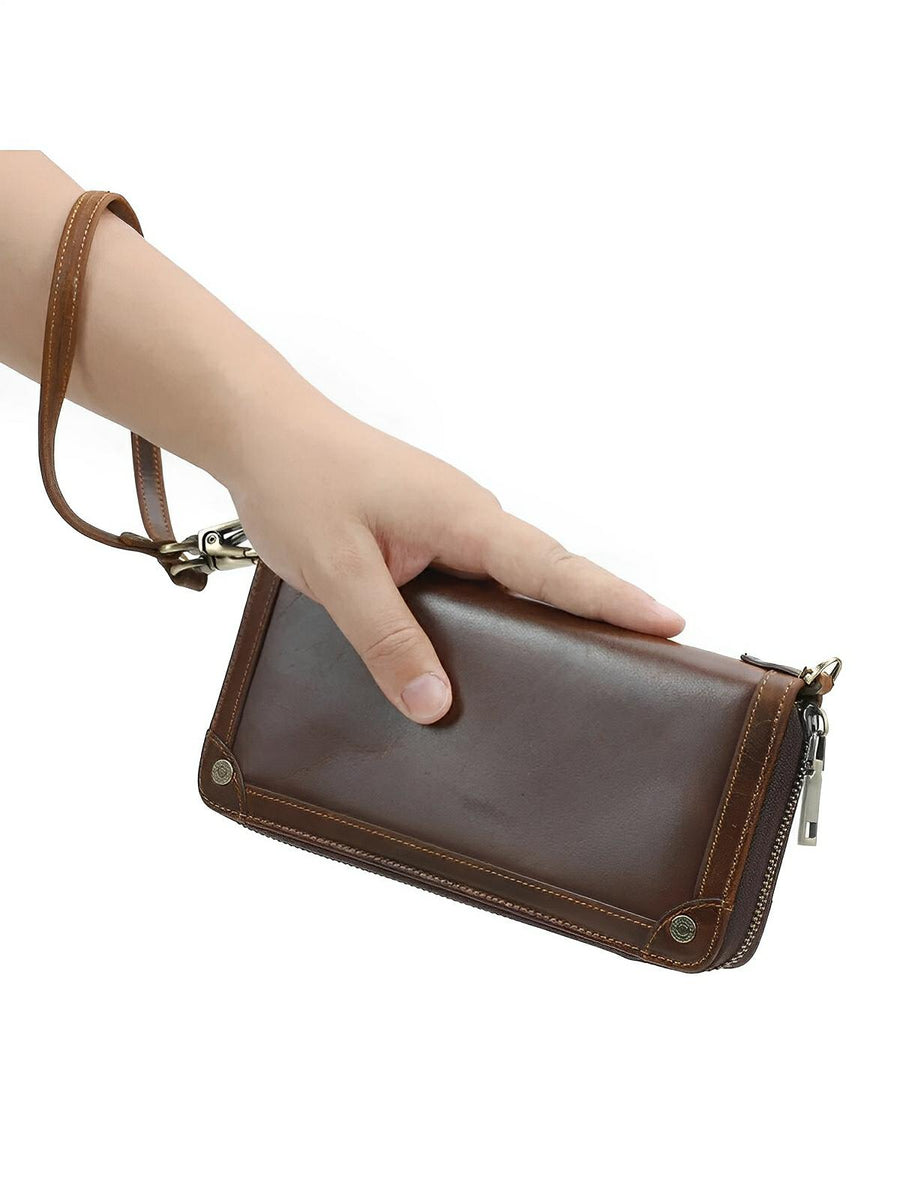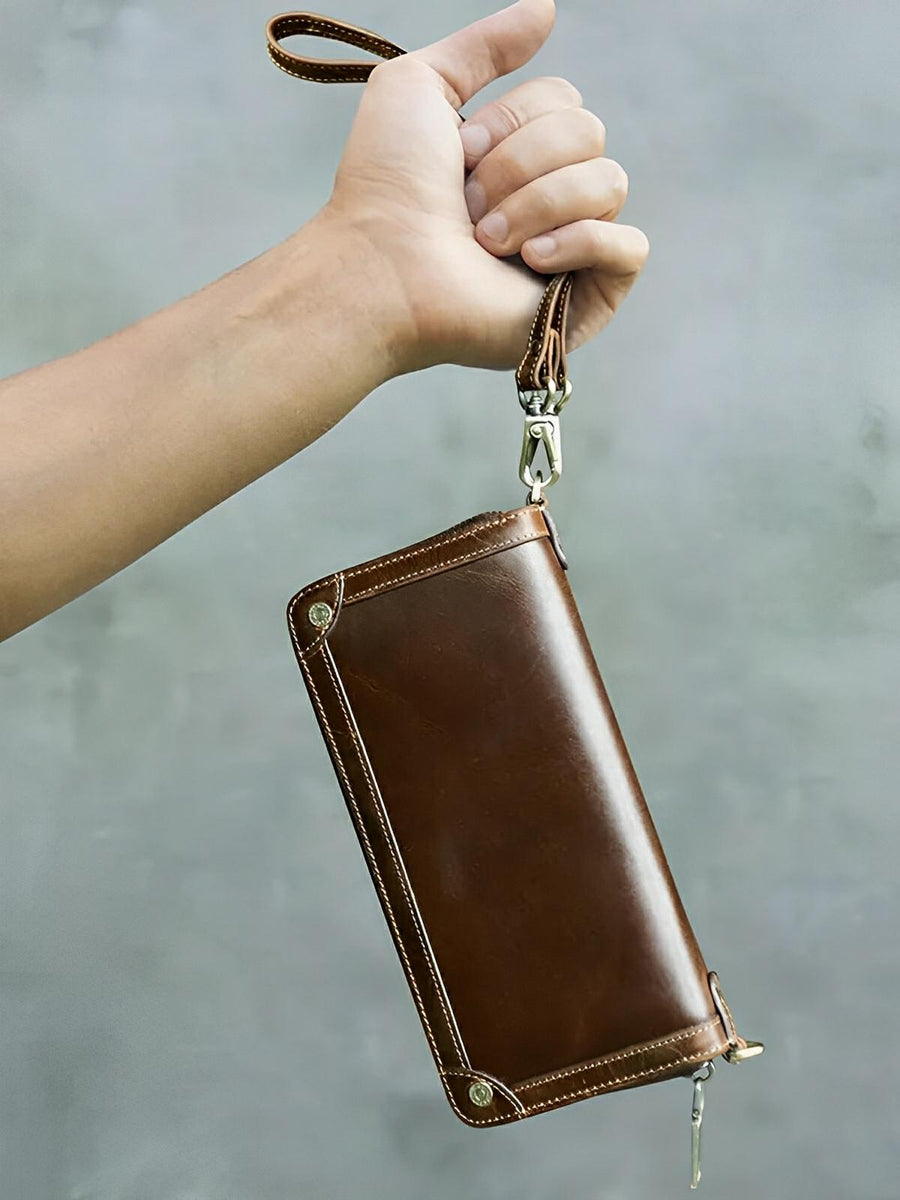 Portafoglio uomo in pelle, grande formato, RFID, scomparti multipli, chiusura con zip, manico amovibile, modello Désiré