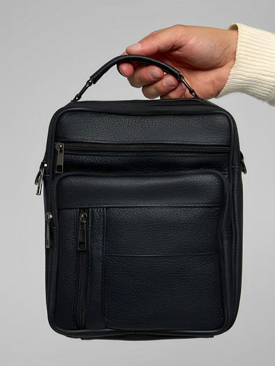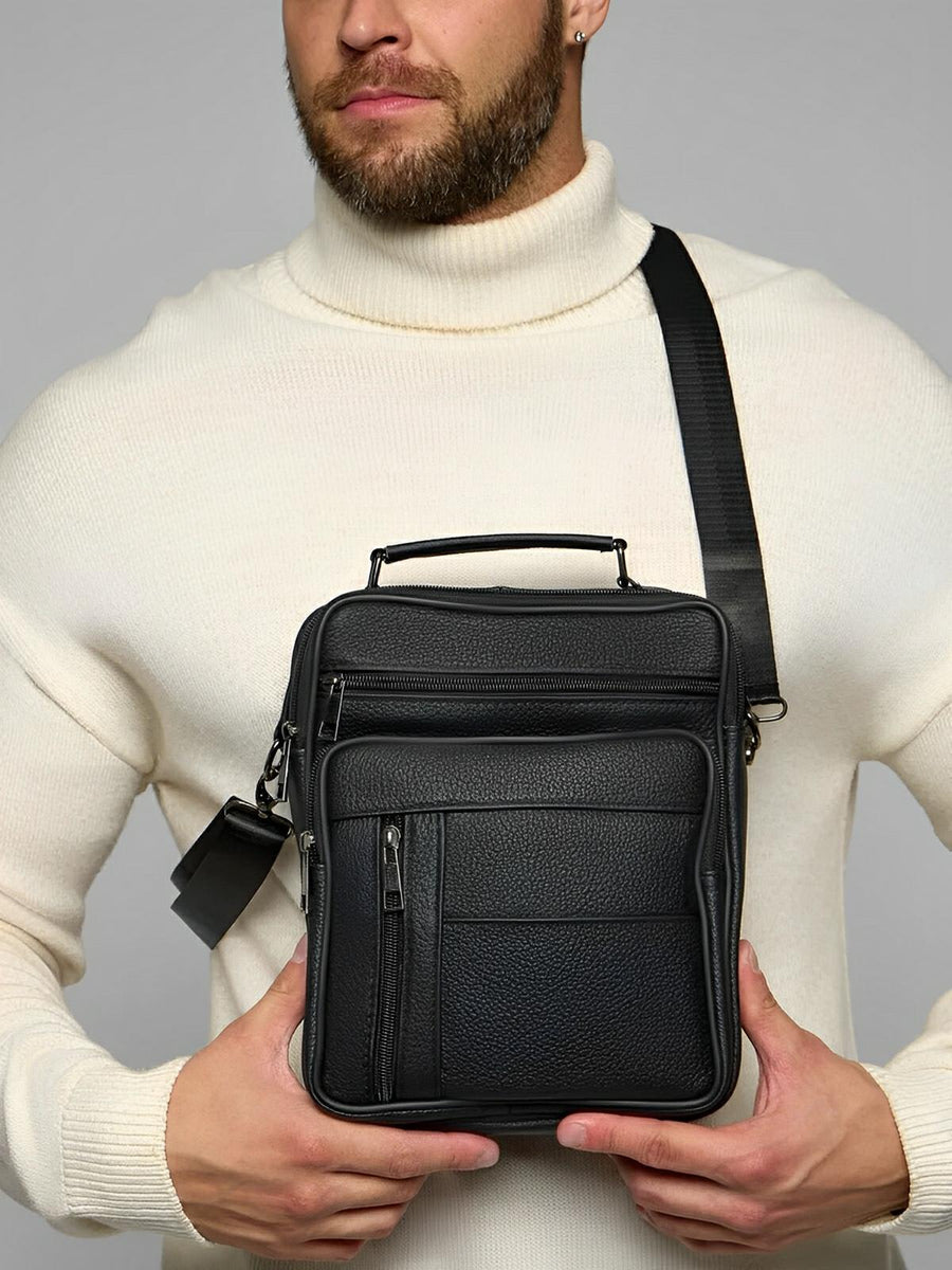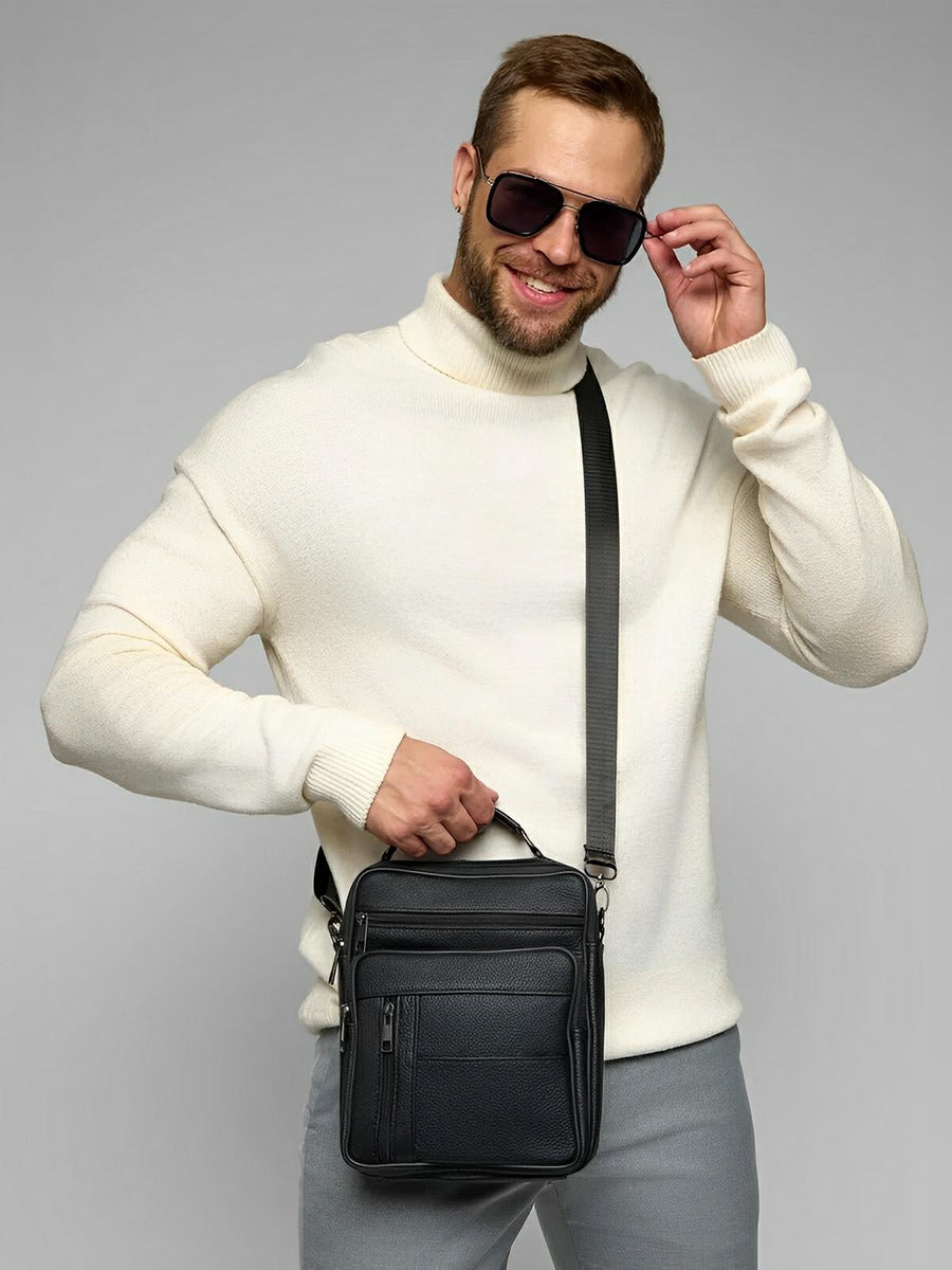 Borsa a tracolla da uomo in pelle pieno fiore, versatile, compatta e pratica, modello Dimitri