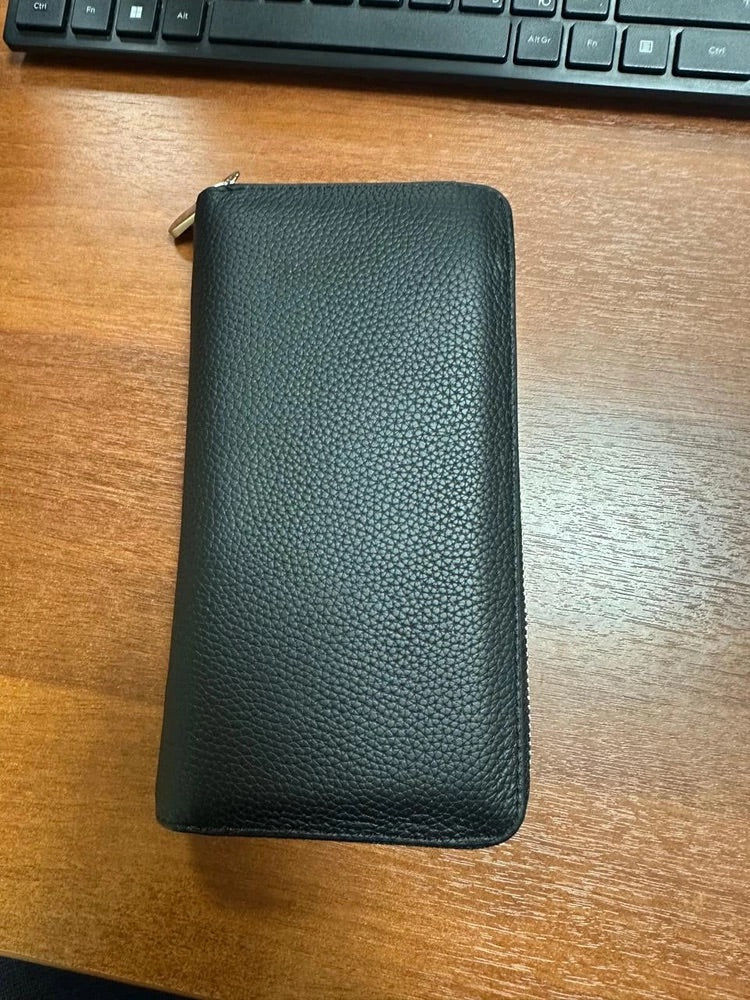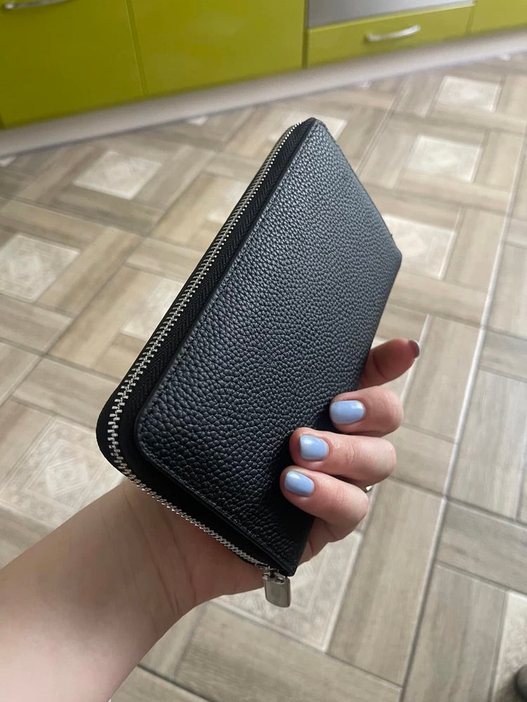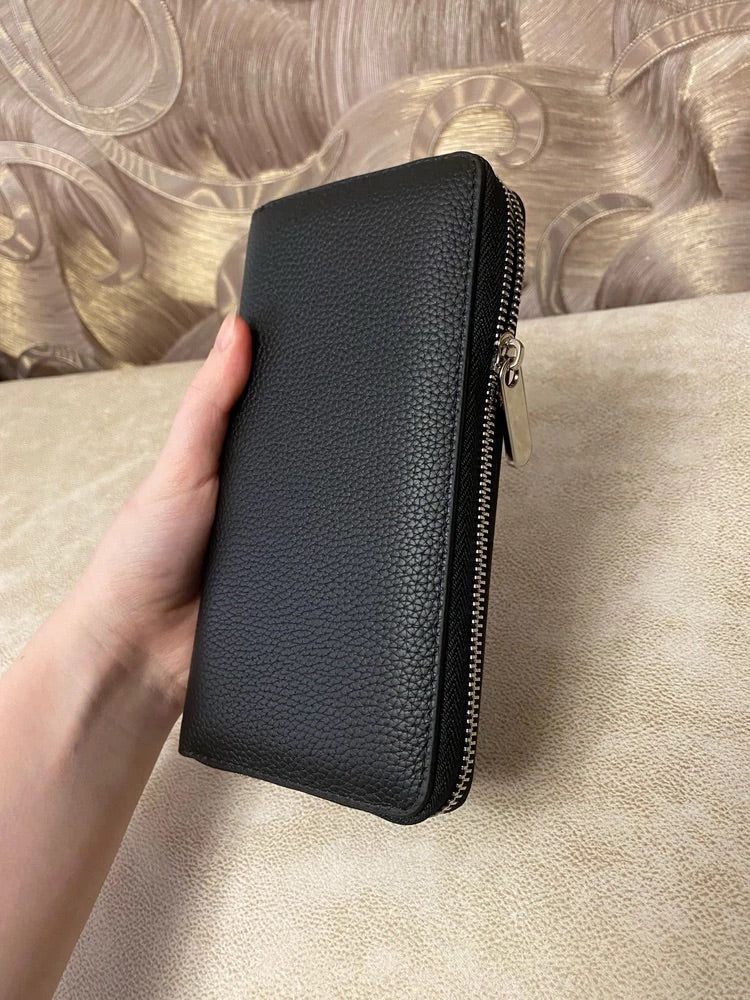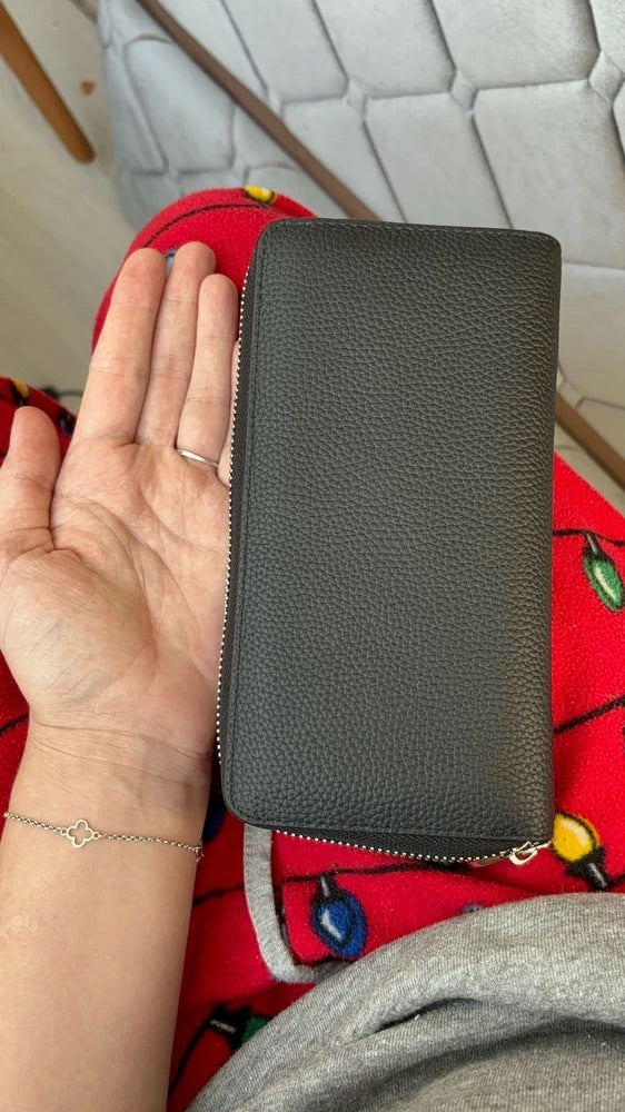 Portafoglio lungo in pelle, grande capacità, chiusura con zip, scomparti multipli, porta carte e banconote, design elegante, modello Dominique