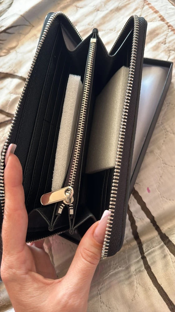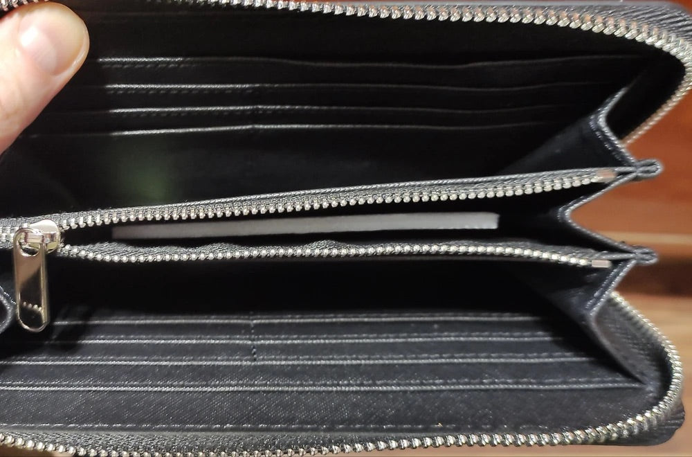 Dotato di una chiusura lampo integrale, questo modello protegge efficacemente il suo contenuto assicurando un’apertura fluida. Dispone di 12 scomparti per carte, di diversi comparti per banconote e documenti, nonché di una tasca centrale con zip ideale per riporre le monete in tutta sicurezza.