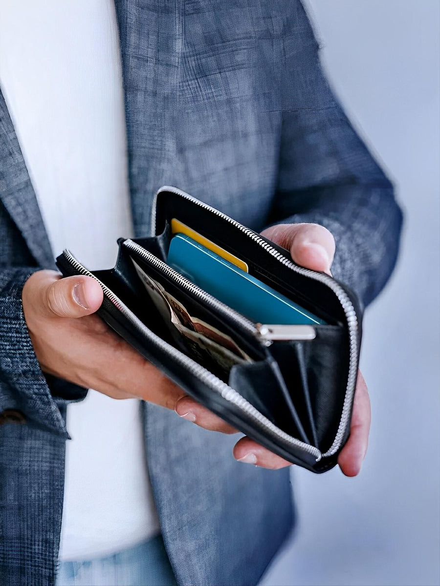 - Grande capacità per carte e banconote