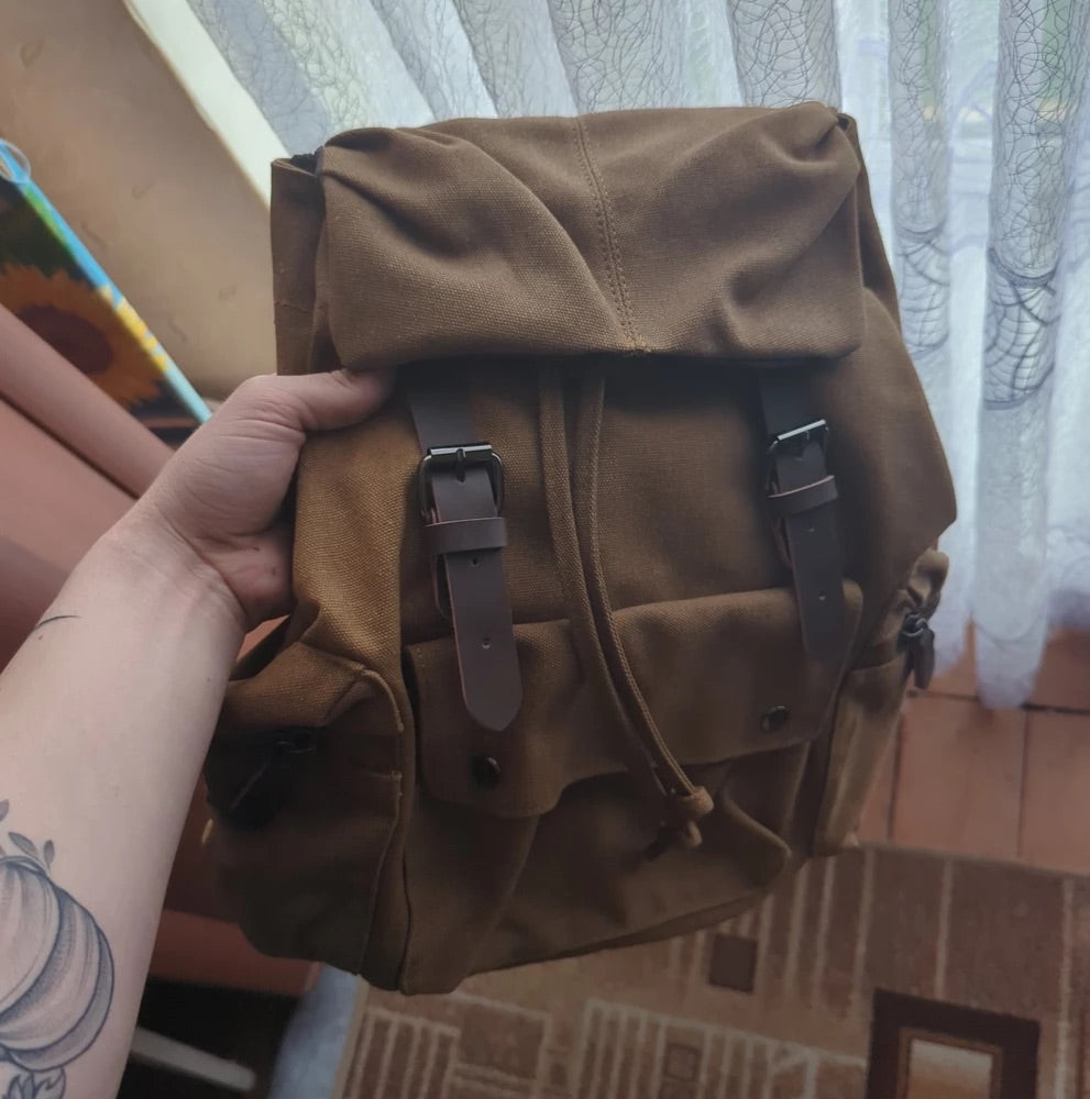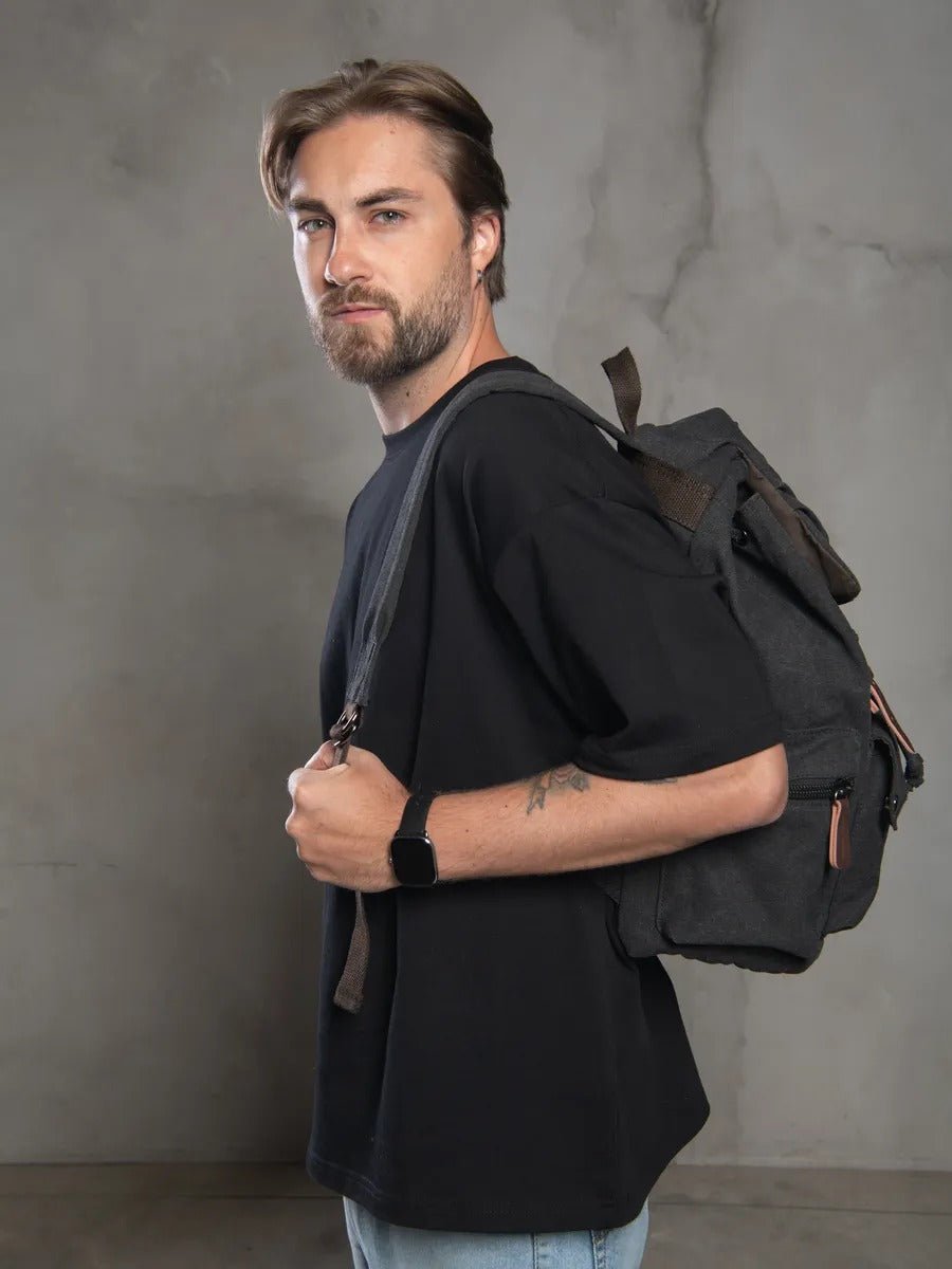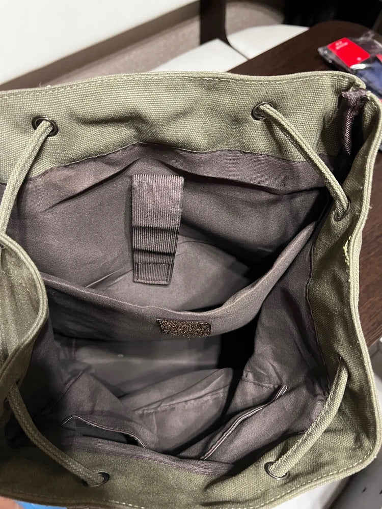 Scegliete un accessorio che unisce funzionalità ed estetica con questo zaino in tela dal design autentico e raffinato.