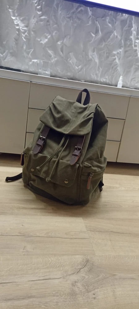 Scoprite questo zaino in tela, perfetto per gli spostamenti quotidiani o le fughe del fine settimana. Realizzato con un tessuto in tela resistente, unisce robustezza e stile senza tempo. Dotato di diverse tasche esterne e di un ampio scomparto interno, questo zaino vi permette di tenere i vostri effetti personali ben organizzati e sempre a portata di mano. Le sue chiusure sicure con bottoni magnetici e le cinghie con dettagli in pelle aggiungono un tocco vintage, mentre gli spallacci regolabili garantiscono un comfort ottimale per tutta la giornata.