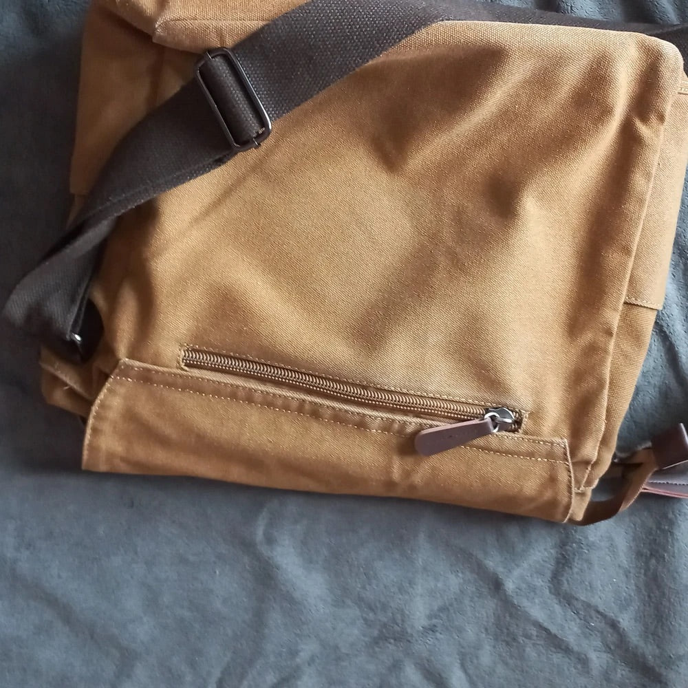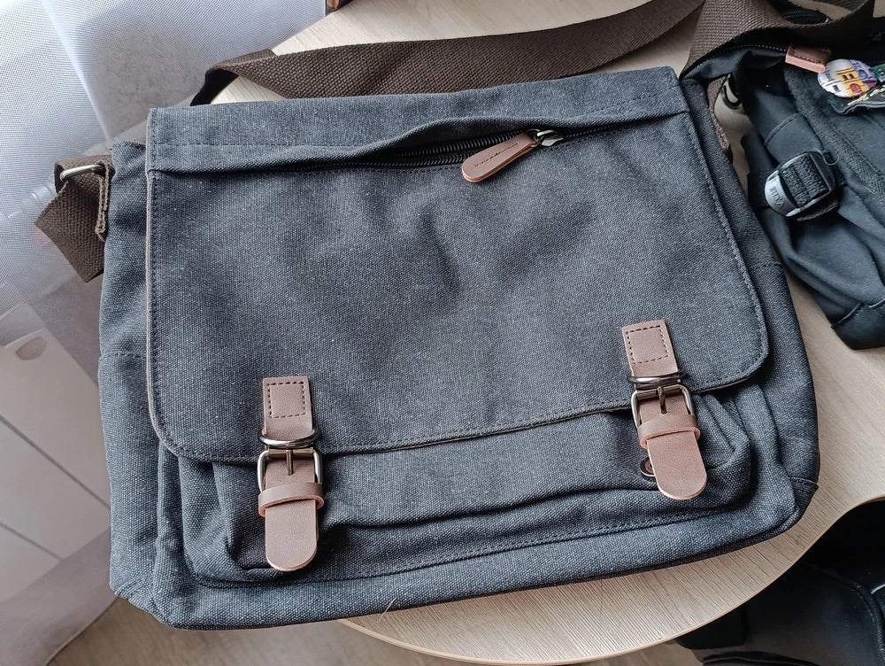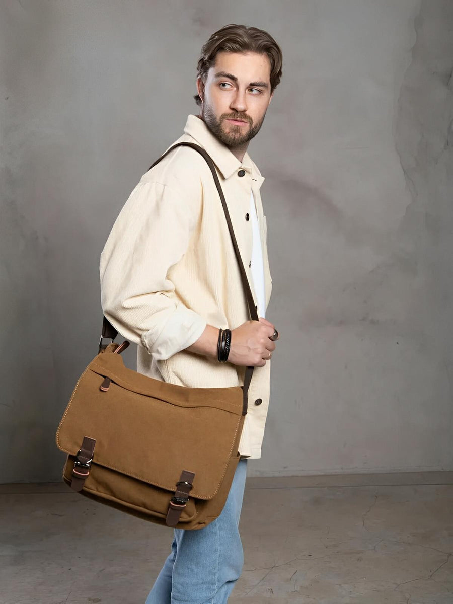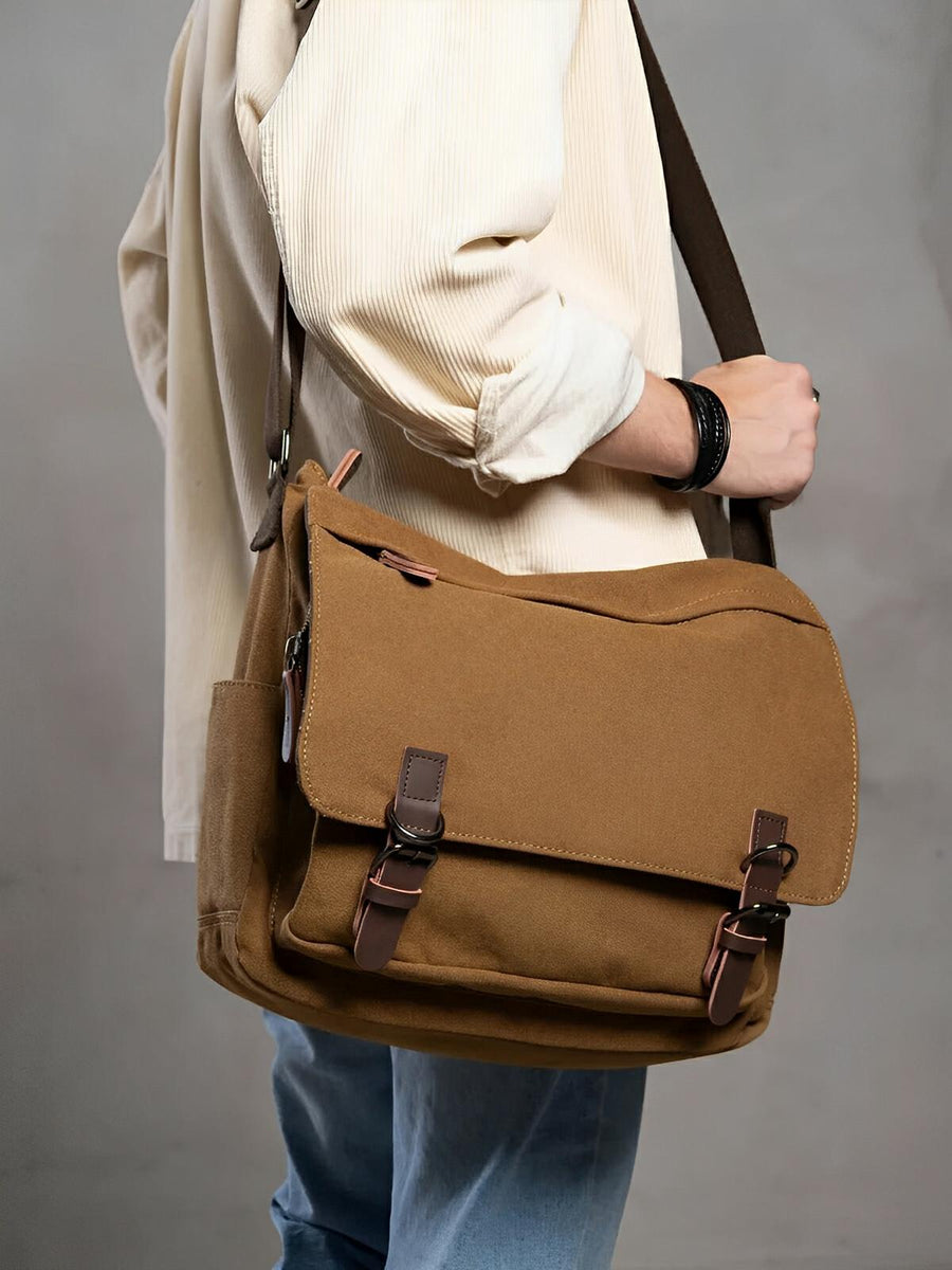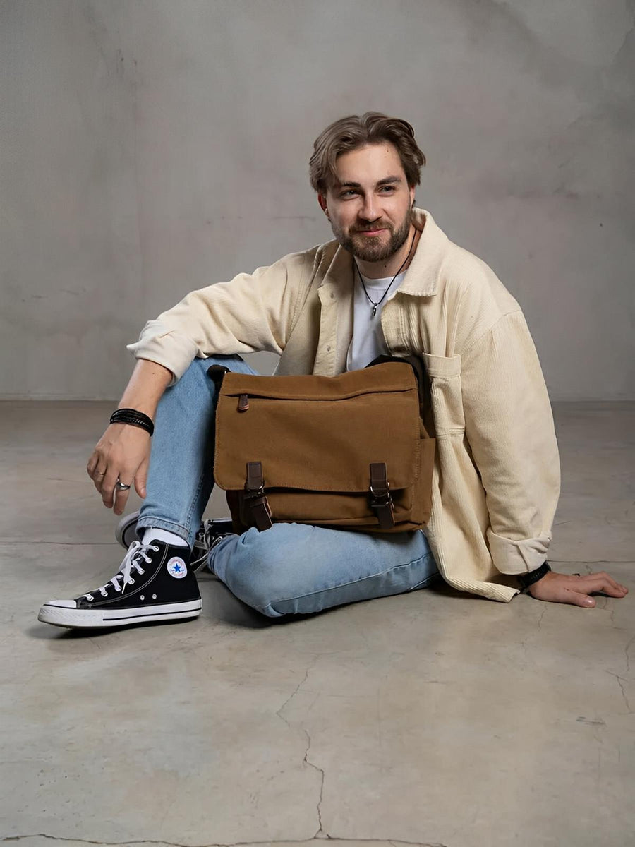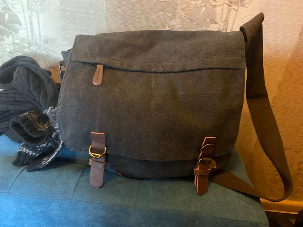 Questa borsa messenger in tela è la compagna ideale per le giornate intense. Con il suo design retrò e la realizzazione in canvas spesso, unisce robustezza e stile per un utilizzo quotidiano.