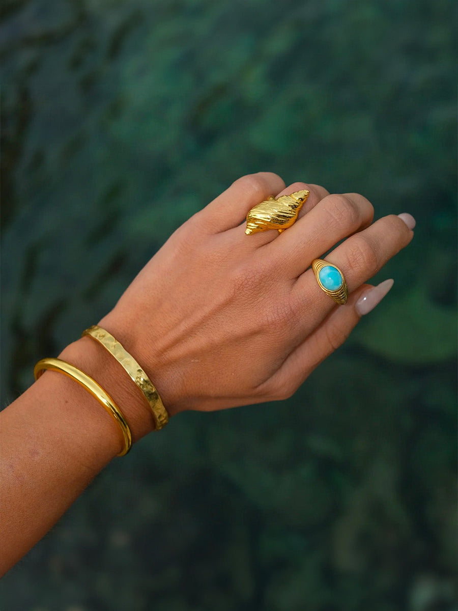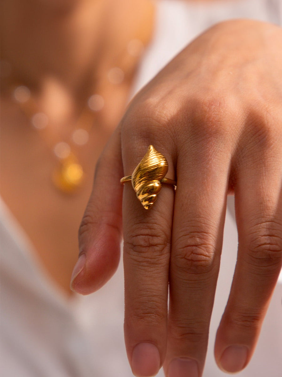 Ispirato ai tesori marini, questo anello conchiglia dorata incarna la bellezza autentica dell’oceano. Con la sua forma a spirale che richiama una vera conchiglia, trasforma ogni gesto in un richiamo alle vacanze estive. Realizzato in acciaio inossidabile placcato oro 18K, non teme né l’acqua né il tempo: perfetto per accompagnare le vostre giornate in spiaggia o le vostre serate estive.