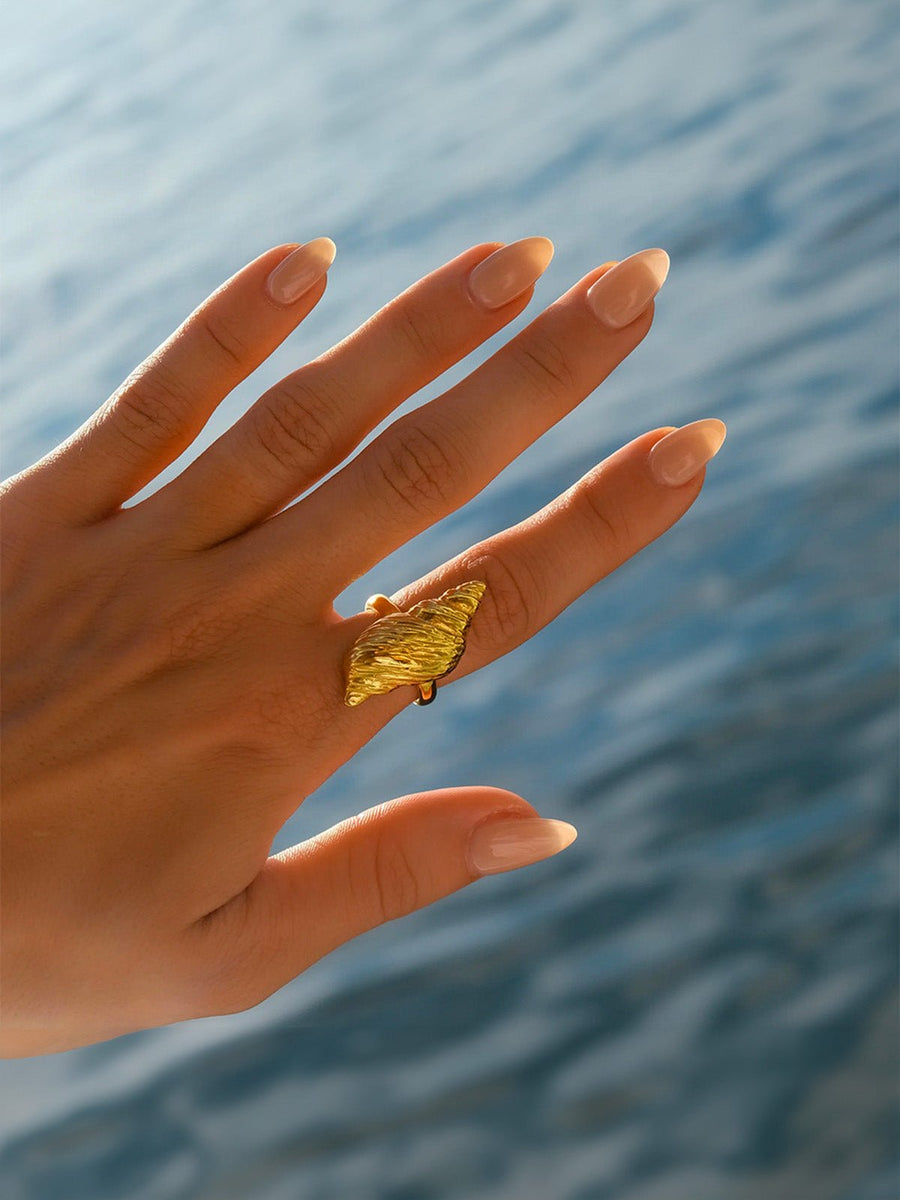 Anello con conchiglia dorata, gioiello marino, stile vacanza, acciaio inossidabile, ispirazione oceano, modello Dorothée