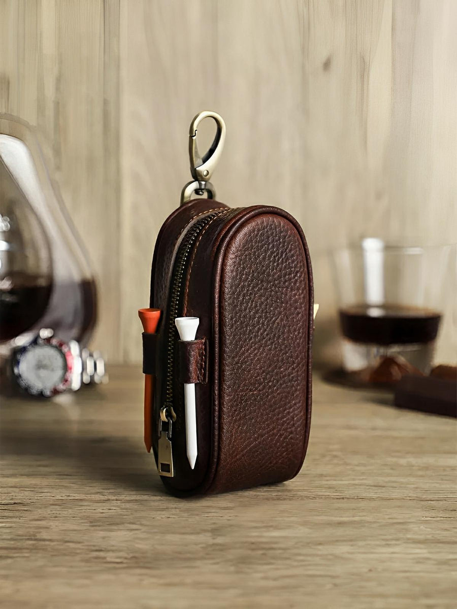 La sua cerniera robusta garantisce la massima sicurezza dei vostri accessori, mentre il design in pelle pieno fiore dona un tocco sofisticato e durevole. Il moschettone metallico consente di agganciarlo facilmente alla vostra sacca da golf, cintura o carrello, assicurando un accesso rapido durante il gioco.
