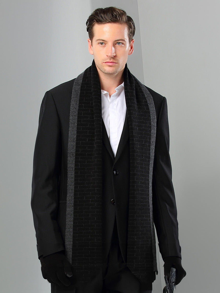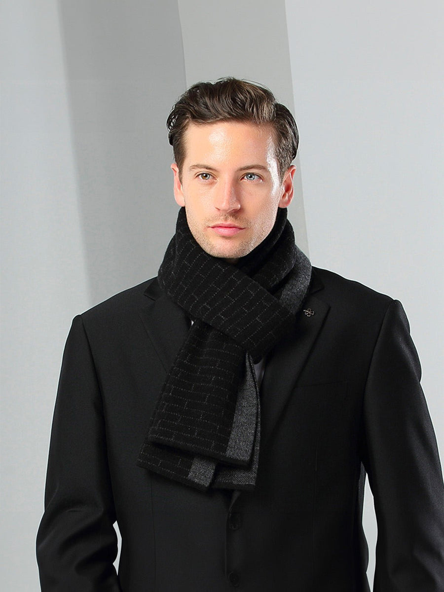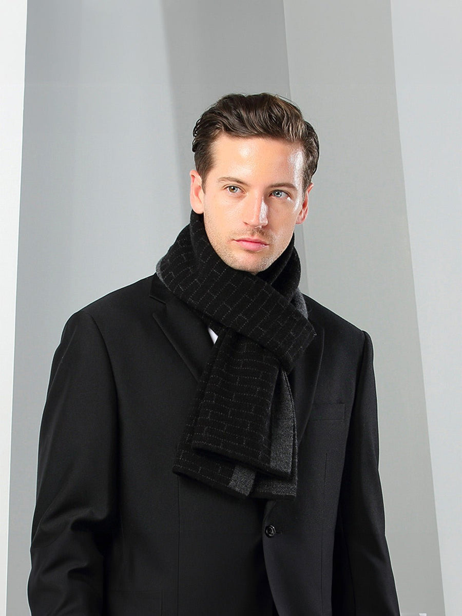 Sciarpa da uomo 100% cashmere, nera e grigia, morbida e calda, look business invernale, design bicolore raffinato, modello Baptiste