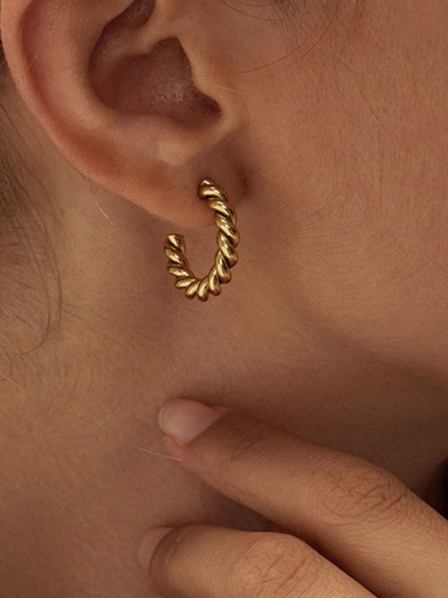 Aggiungete un tocco luminoso al vostro stile con questi cerchi intrecciati in acciaio inox. Il loro design a forma di C e il placcatura in oro 18K conferiscono un aspetto deciso e contemporaneo. Progettati per resistere all’acqua e ipoallergenici, sono ideali per un uso quotidiano mantenendo la loro brillantezza. Disponibili in tre misure – 20 mm, 25 mm e 40 mm – permettono di variare lo stile secondo i vostri desideri. Un accessorio di carattere per valorizzare i vostri look con audacia e luminosità.