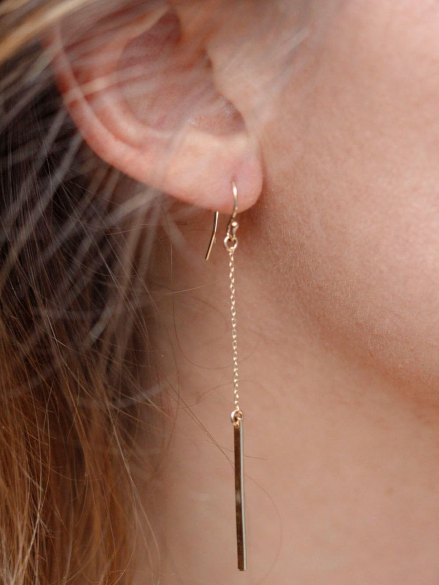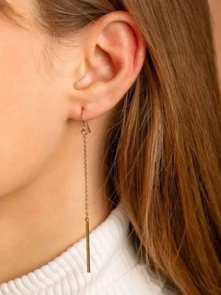 Aggiungete un tocco di leggerezza moderna alla vostra quotidianità con questi orecchini lunghi a catena dritta. La loro struttura sottile ed elegante segue il movimento del viso per creare un effetto sottile e raffinato ad ogni utilizzo.