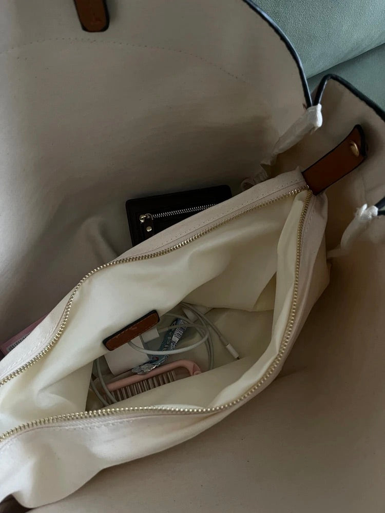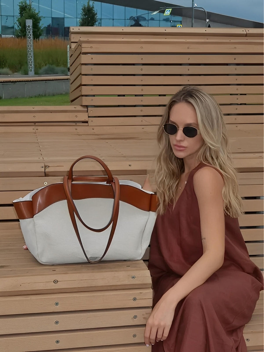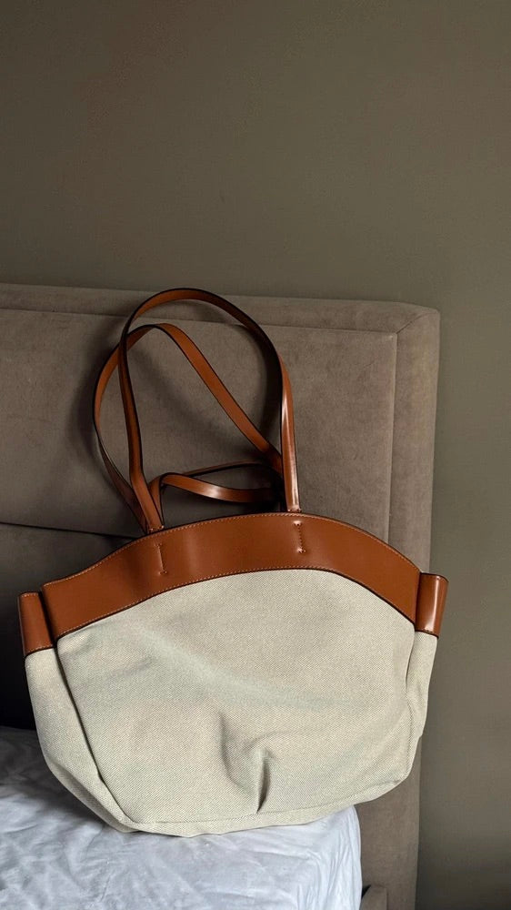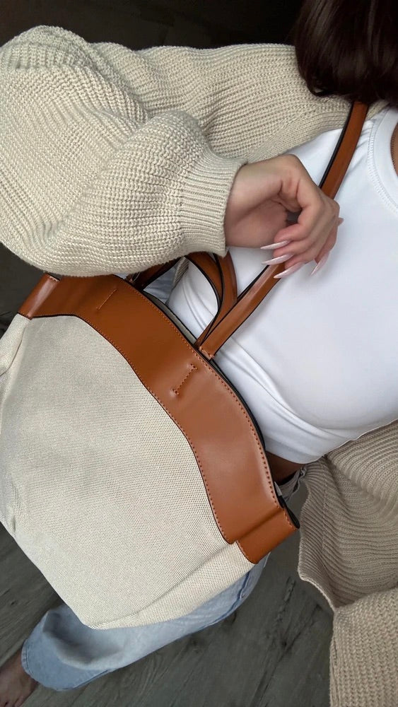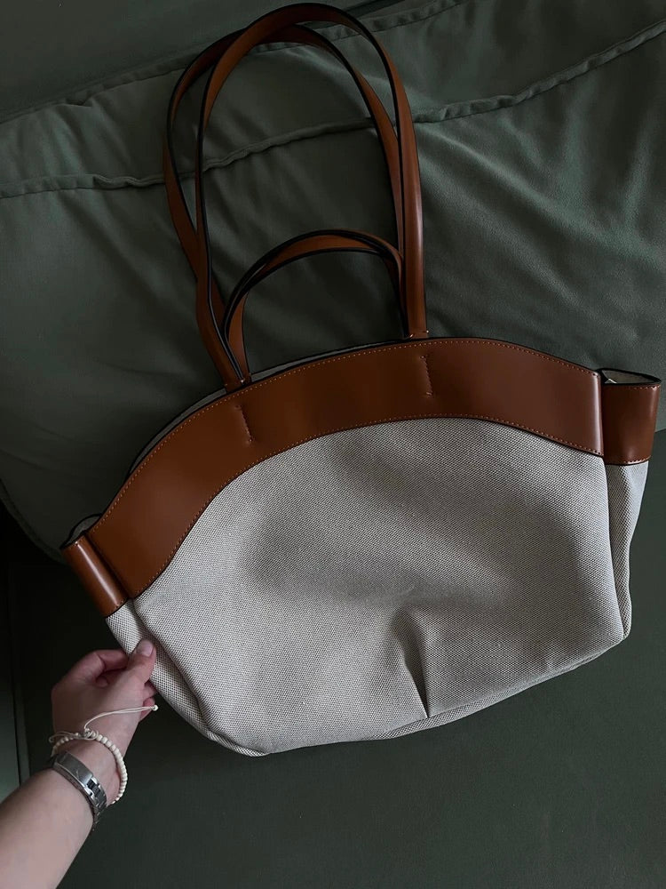 Questa borsa shopper unisce un volume generoso a un design grafico per accompagnare tutte le vostre giornate attive. La sua struttura in tela canvas spessa è valorizzata da manici e finiture in similpelle a contrasto, che donano carattere e modernità alla silhouette.