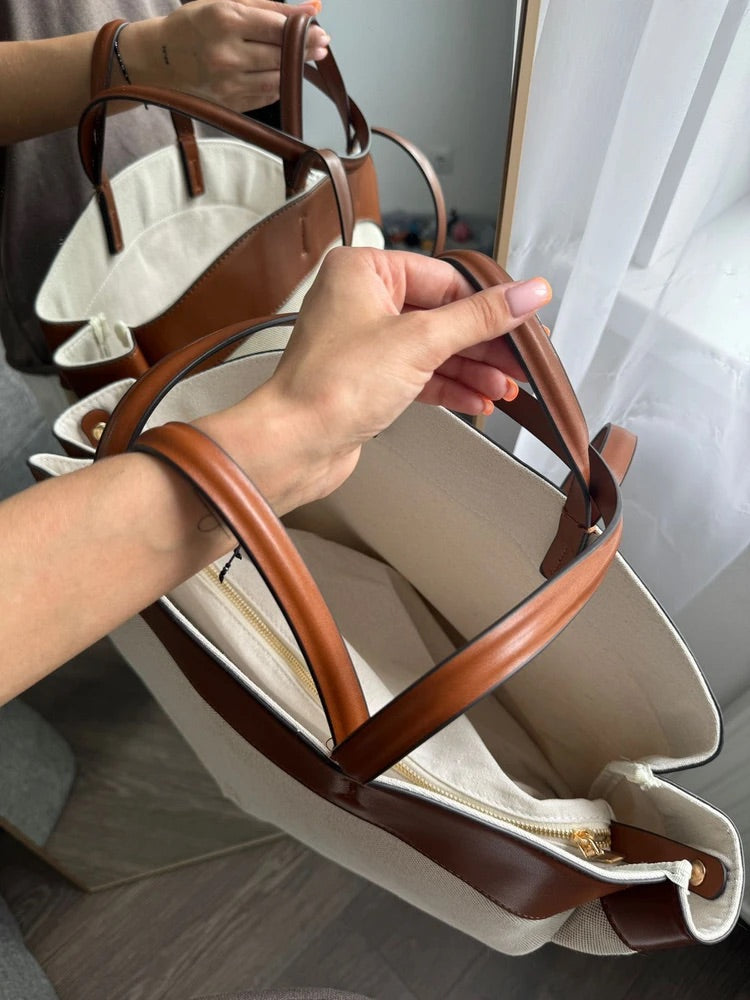 Grande borsa a mano, tela canvas con manici in similpelle vegana, borsa donna a spalla e a mano con pochette amovibile, modello Eleonore