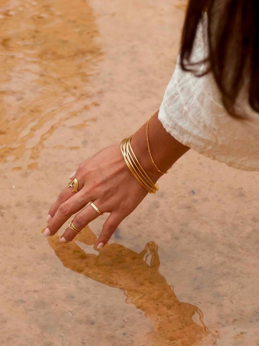 Ideale per donare un tocco solare ai vostri outfit, può essere indossato da solo per un effetto chic oppure abbinato ad altri anelli sottili per un look più audace. Un gioiello che non si ossida, perfetto per valorizzare le vostre mani giorno dopo giorno.