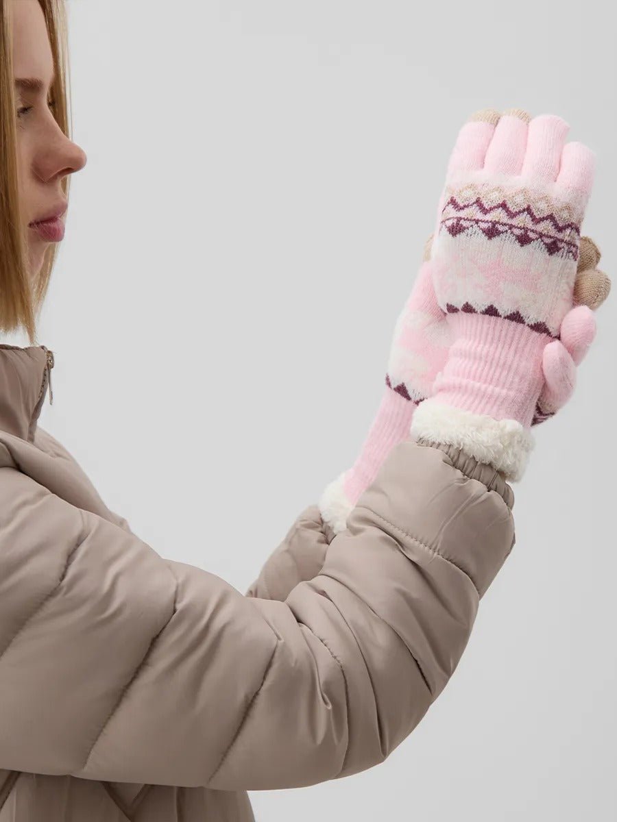 Immergete le vostre mani in un morbido abbraccio con questi guanti invernali foderati pensati per affrontare il freddo con stile. Ispirati ai motivi tradizionali nordici, presentano incantevoli motivi di renne e fiocchi di neve che evocano immediatamente l’atmosfera invernale.