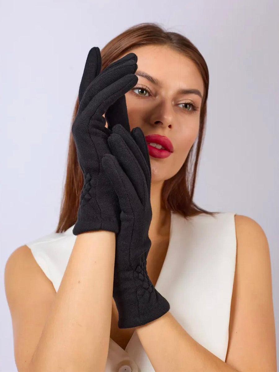 Guanti neri da donna invernali, caldi e morbidi, foderati in pile, compatibili con touchscreen, ricamo elegante, vestibilità aderente, modello Euprasie