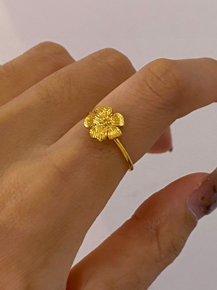 Ogni dettaglio è stato studiato per offrire un gioco di volumi sottile, con due fiori finemente cesellati che catturano la luce e donano un tocco luminoso alla vostra mano. La sua struttura aperta consente una perfetta regolabilità su diverse misure di dito, garantendo al contempo un comfort ottimale ogni giorno.