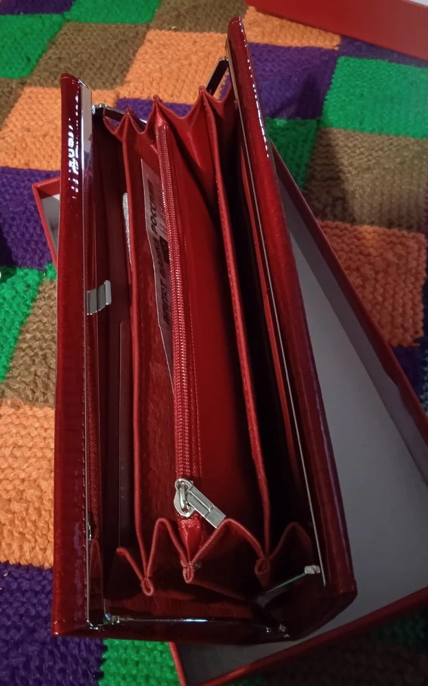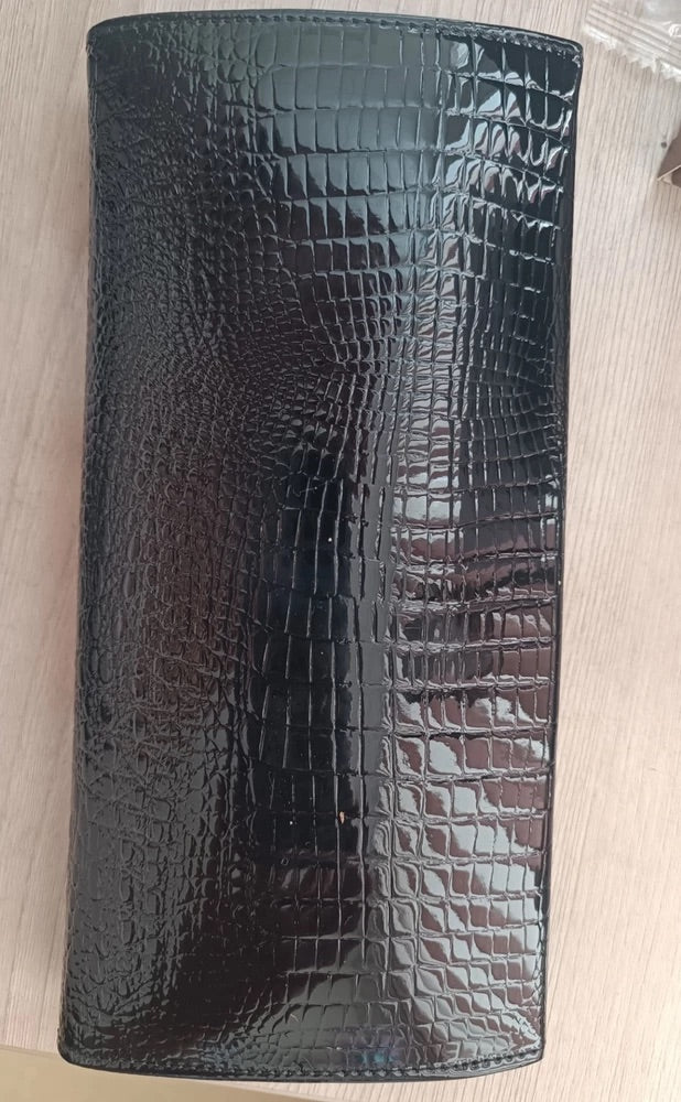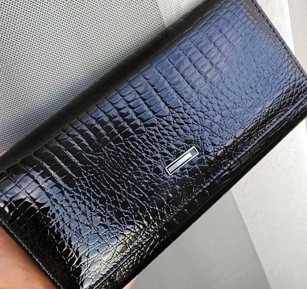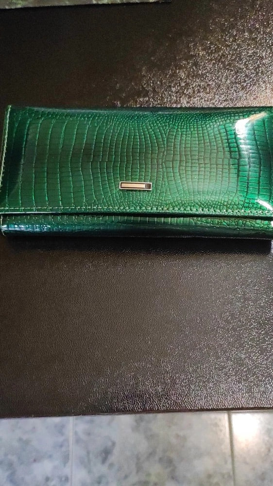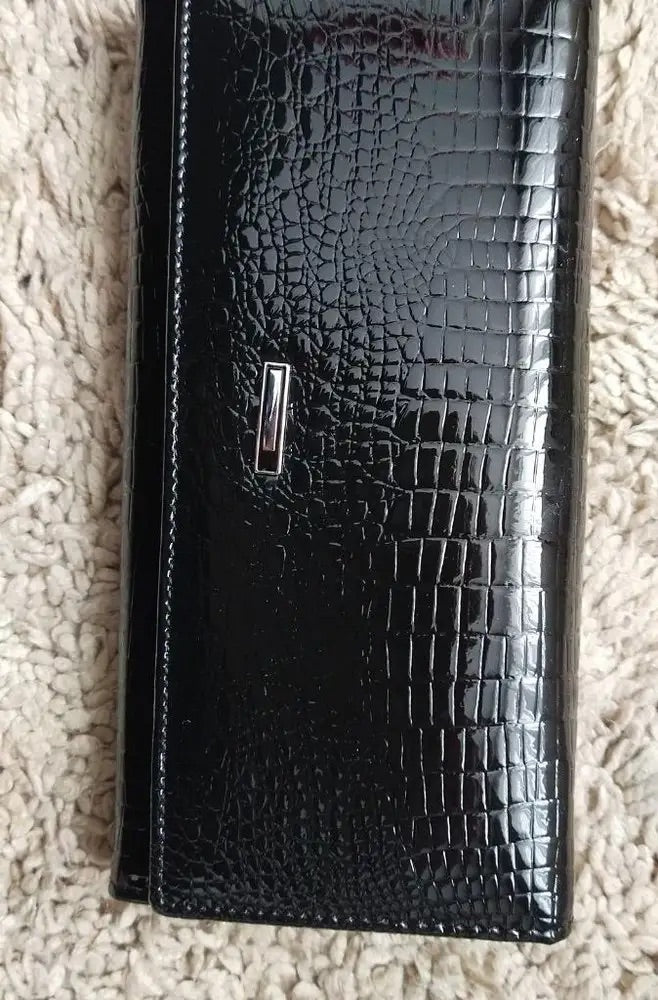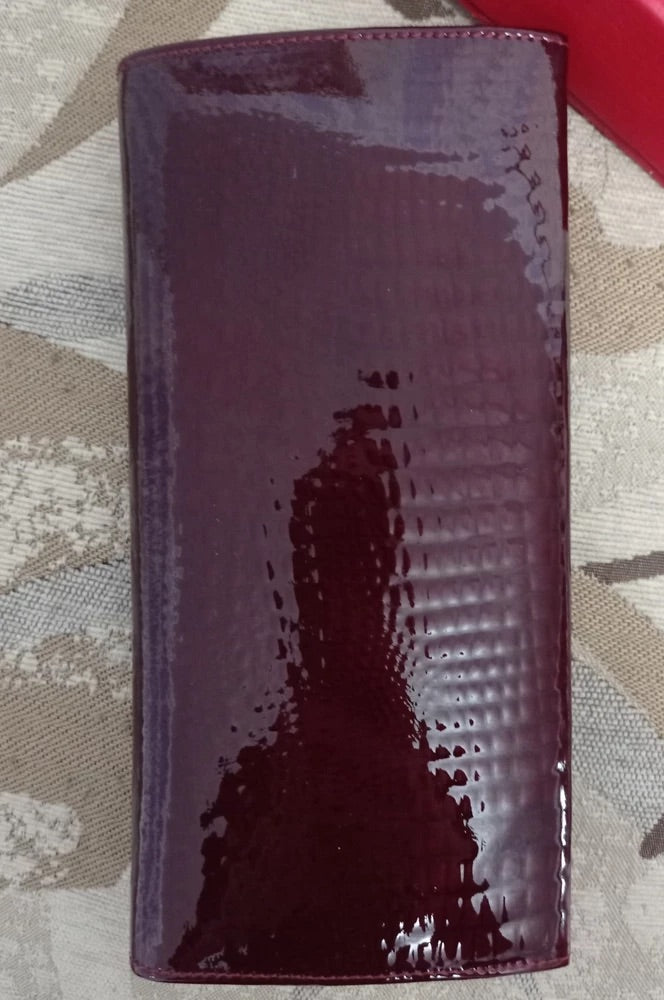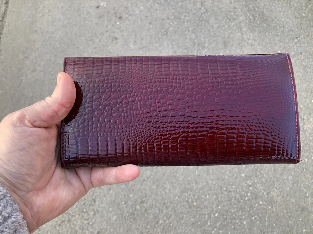 Scoprite questo portafoglio da donna in pelle verniciata dal formato lungo, pensato per chi cerca sia stile che funzionalità. La sua finitura lucida effetto rettile cattura la luce e attira lo sguardo, mantenendo al contempo una presa piacevole.