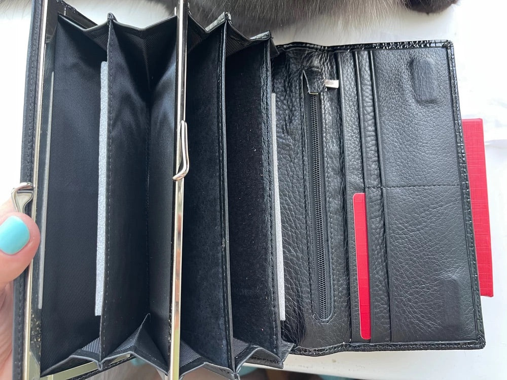 Questo modello dispone di numerosi scomparti per carte, un comparto sicuro per le monete grazie a una chiusura metallica classica, oltre a diversi spazi per banconote o documenti. È perfettamente progettato per organizzare i vostri essenziali quotidiani senza rinunciare all’estetica.