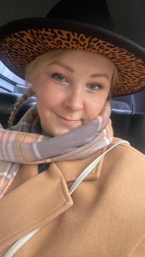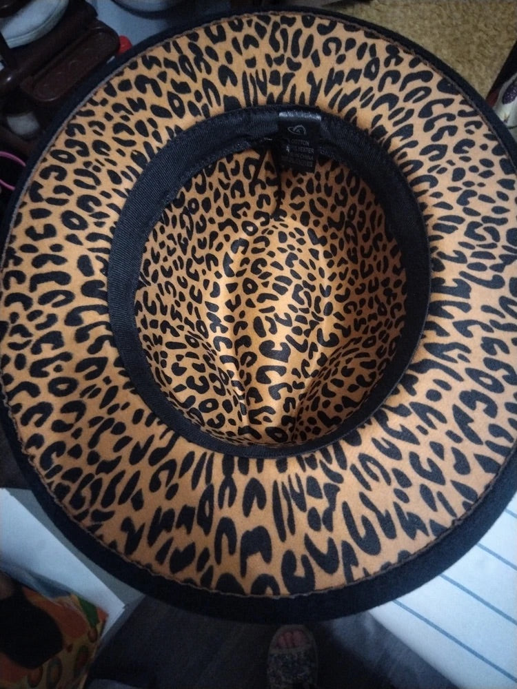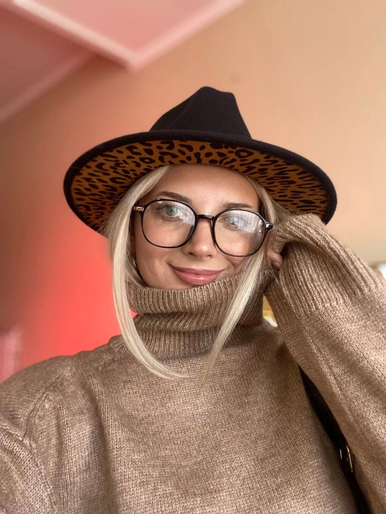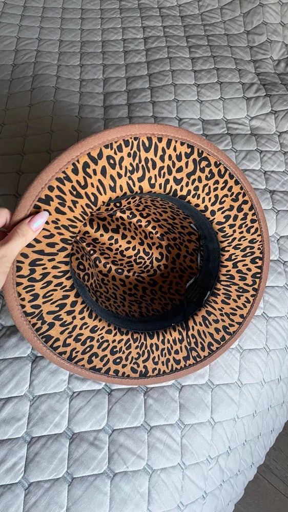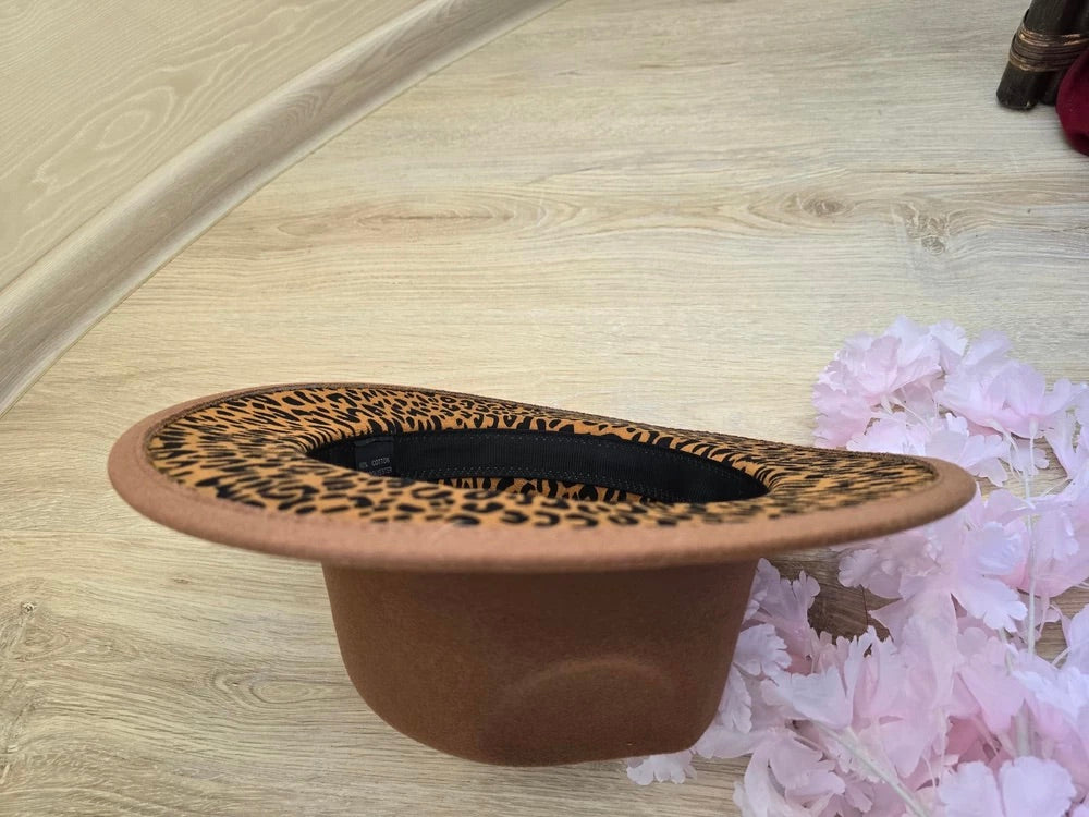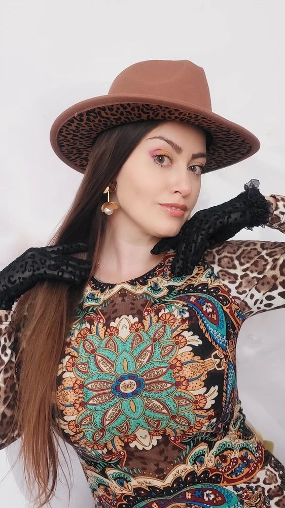 Cappello fedora in feltro da donna, fedora con interno leopardato, cappello a tesa larga autunno inverno, feltro rigido con stampa animalier, cappello di tendenza urbana, modello Felindrae