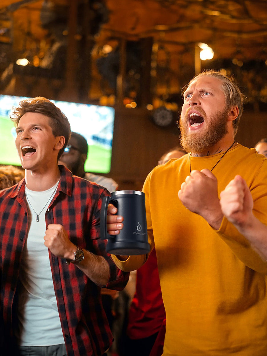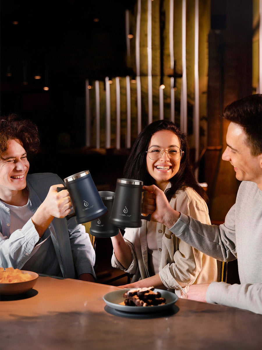Thermos, gamma IDEUS, boccale da birra in acciaio inox, tazza a doppia parete, mug 1000 ml, grande capacità, manico ergonomico, mantiene caldo e freddo, acciaio inox 304, senza BPA, modello Galbin