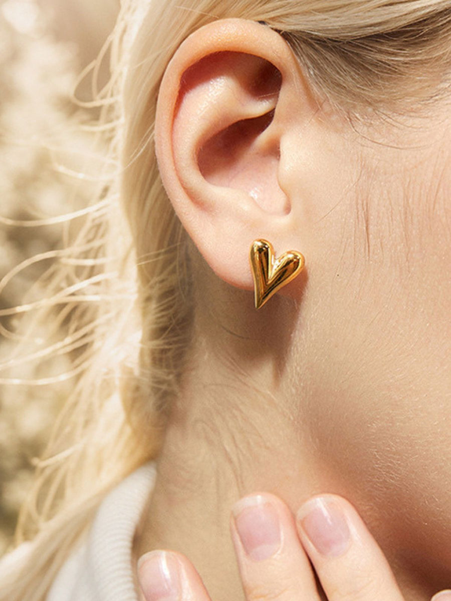 Esprimete la vostra personalità con questi orecchini a forma di cuore firmati eManco. Realizzati in acciaio inossidabile 316 e impreziositi da una placcatura in oro 18 carati, incarnano una semplicità audace. La loro forma geometrica a cuore e la finitura a specchio si adattano a qualsiasi outfit, dal quotidiano agli appuntamenti più eleganti.