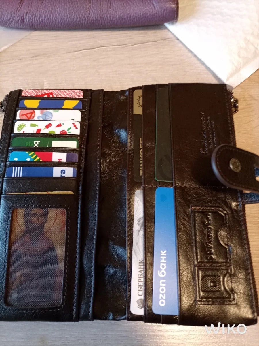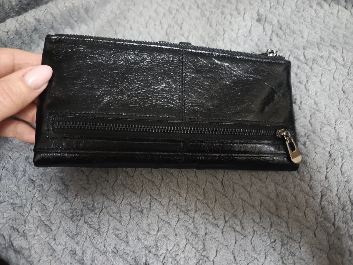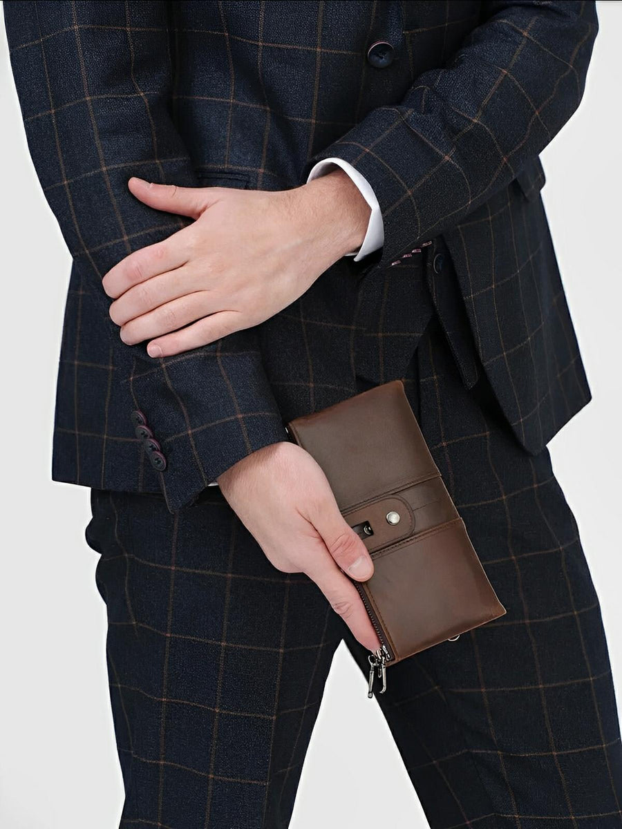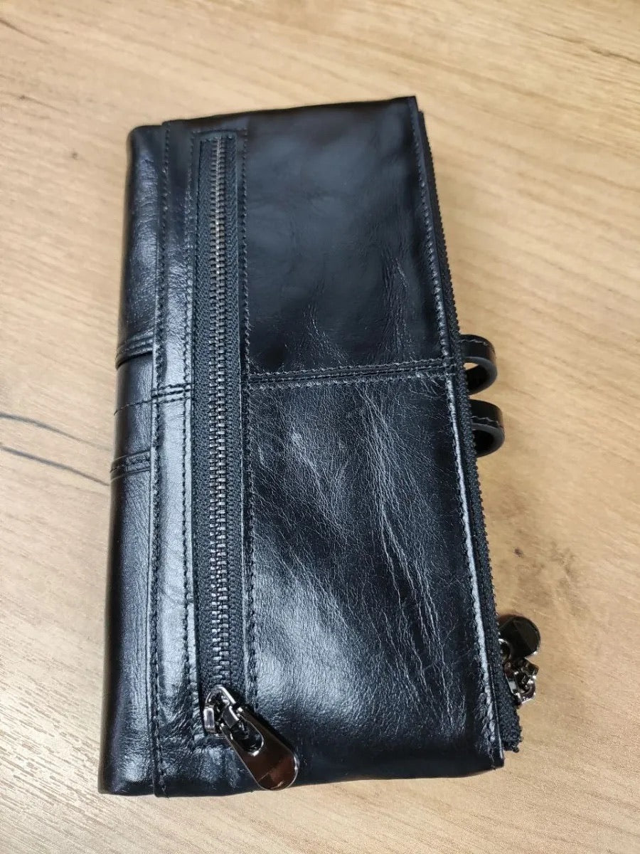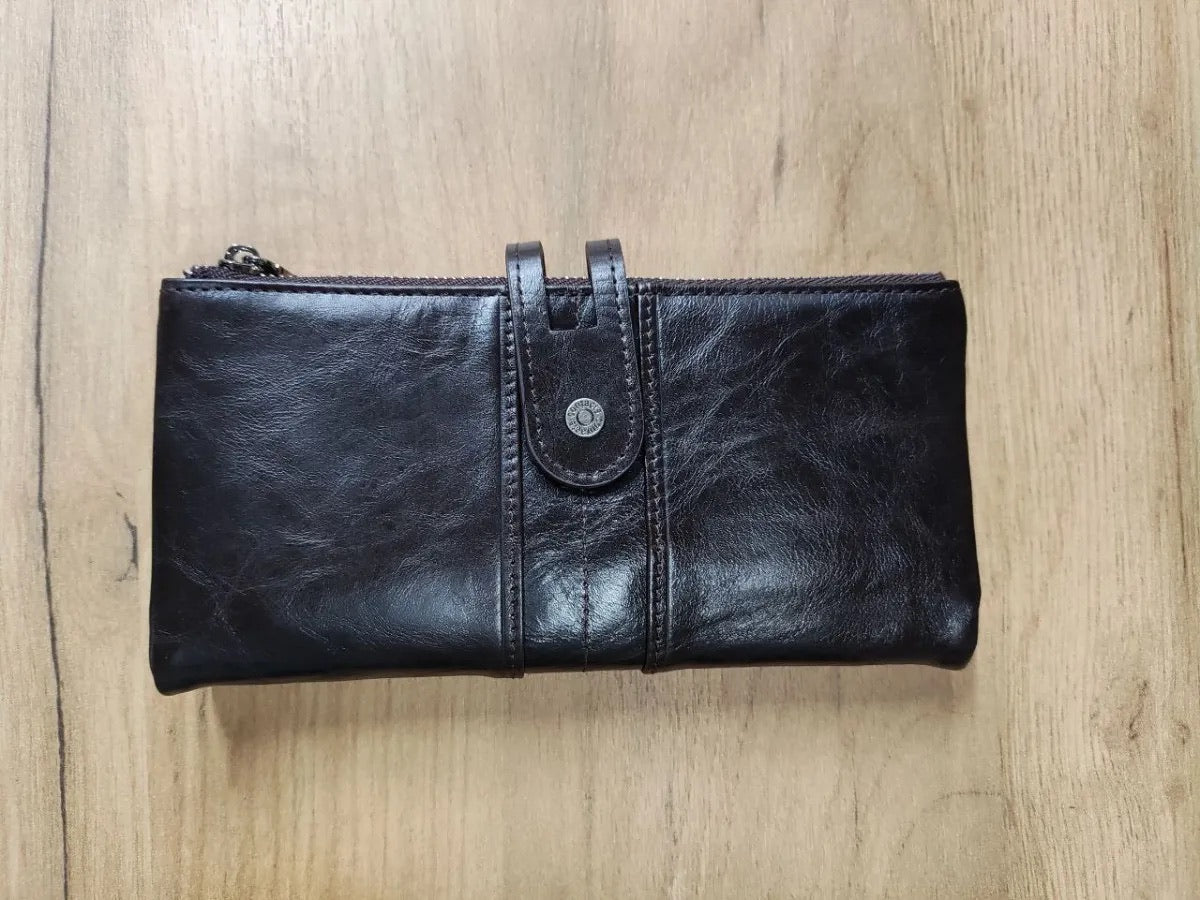 Il suo formato lungo e compatto si adatta a ogni occasione, scivolando facilmente in una borsa o tenendosi perfettamente in mano. Questo portafoglio è la scelta ideale per chi privilegia organizzazione e sicurezza senza rinunciare allo stile.