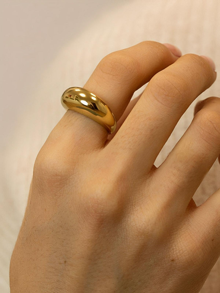 Disponibile in due tonalità metalliche – acciaio classico e oro raffinato – e in diverse misure (US5 a US8), si adatta perfettamente a qualsiasi mano. Leggero (0,006 kg), si indossa comodamente tutto il giorno, sia da solo che abbinato ad altri anelli.