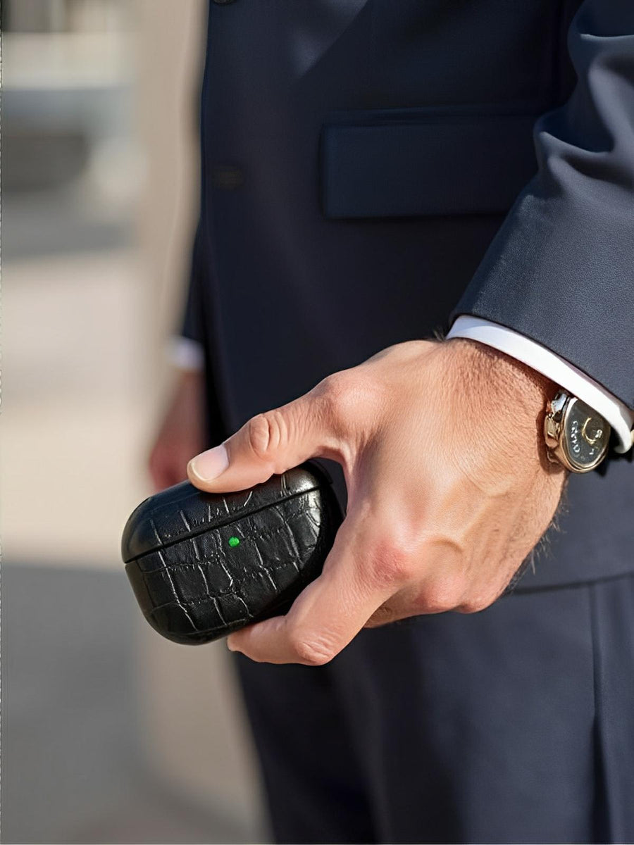 Offrite una protezione elegante ai vostri AirPods Pro con questa custodia in similpelle effetto coccodrillo. Progettata per adattarsi perfettamente alla forma della custodia, assicura una protezione ottimale contro graffi, urti e polvere.