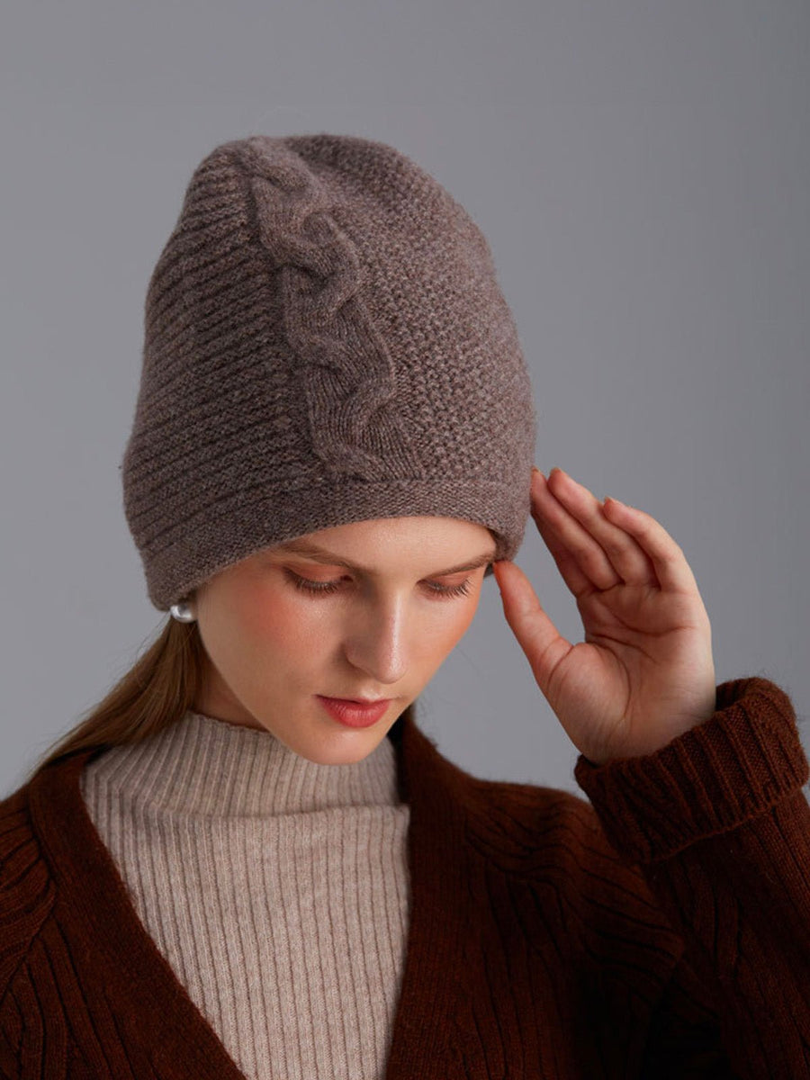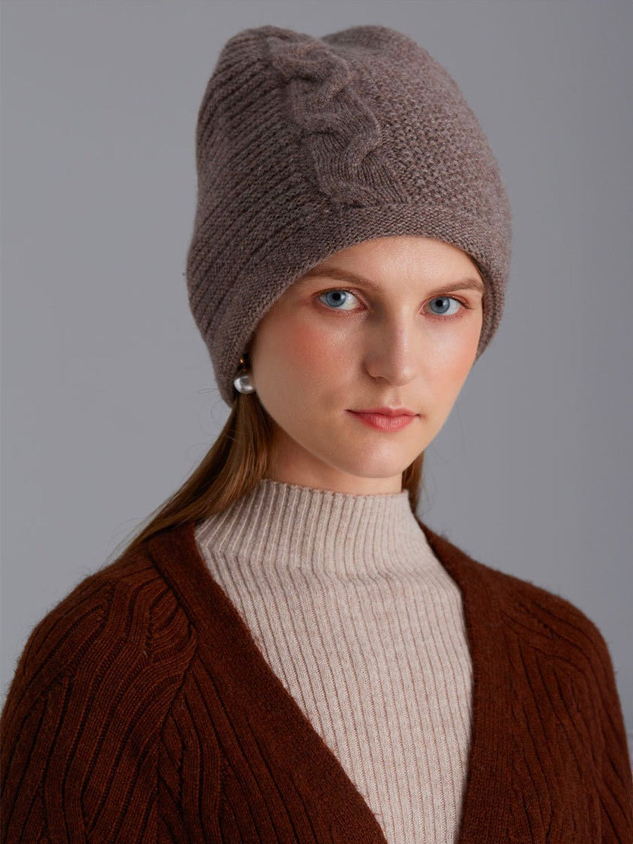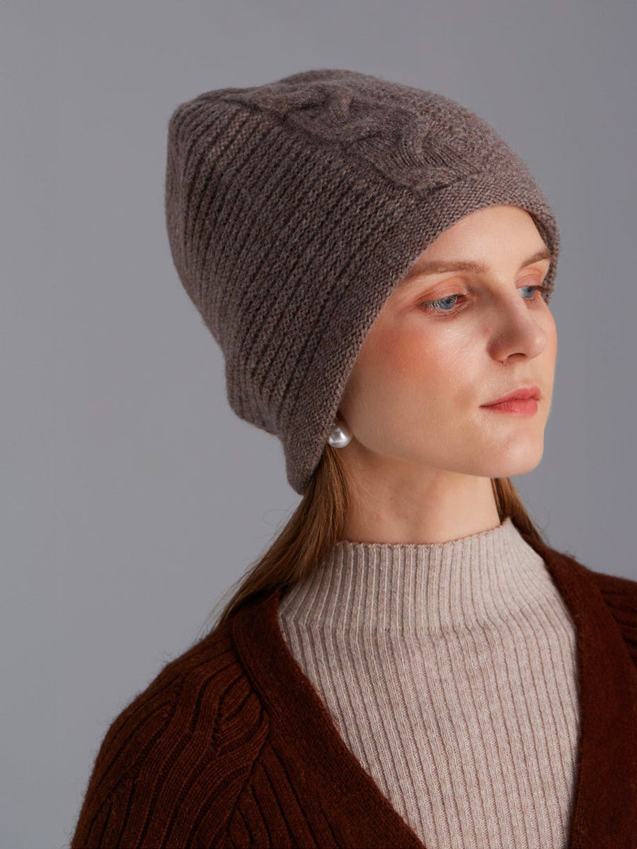Berretto caldo in morbida lana, lavorazione a trecce stile minimal, accessorio invernale confortevole e aderente, modello Haruma