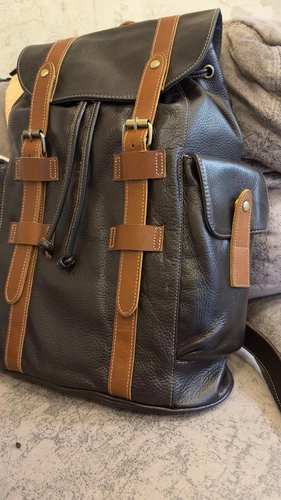 Scoprite questo zaino in pelle, progettato per unire stile e praticità. Offre una texture morbida e resistente, ideale per i vostri spostamenti quotidiani o per i viaggi. Grazie al suo design spazioso e organizzato, questo zaino può contenere un computer portatile fino a 14 pollici, documenti e altri oggetti essenziali.