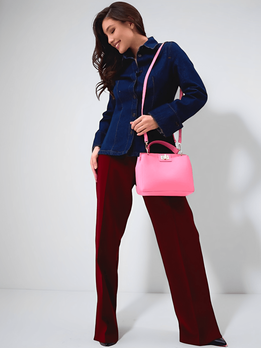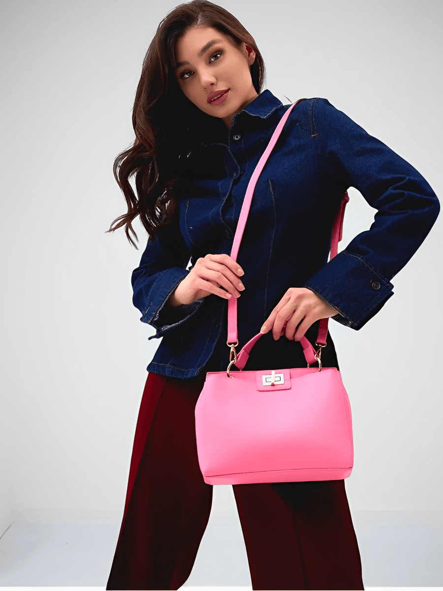 Questa borsa a mano da donna coniuga eleganza e funzionalità grazie al suo design essenziale e raffinato. Realizzata in similpelle vegana di alta qualità, offre una texture morbida e resistente, perfetta per l’uso quotidiano. La sua forma strutturata e le linee pulite la rendono un accessorio versatile, ideale sia per una giornata di lavoro che per una serata fuori.
