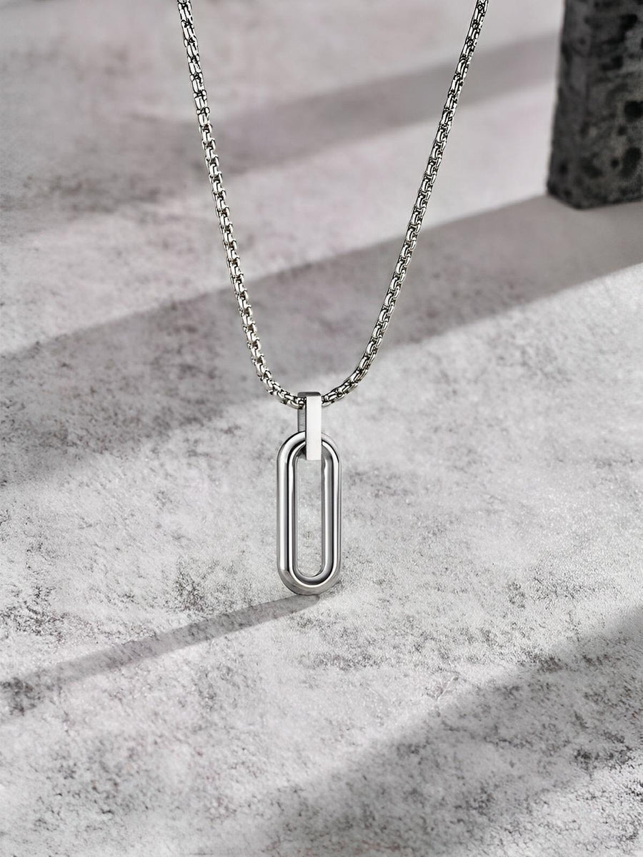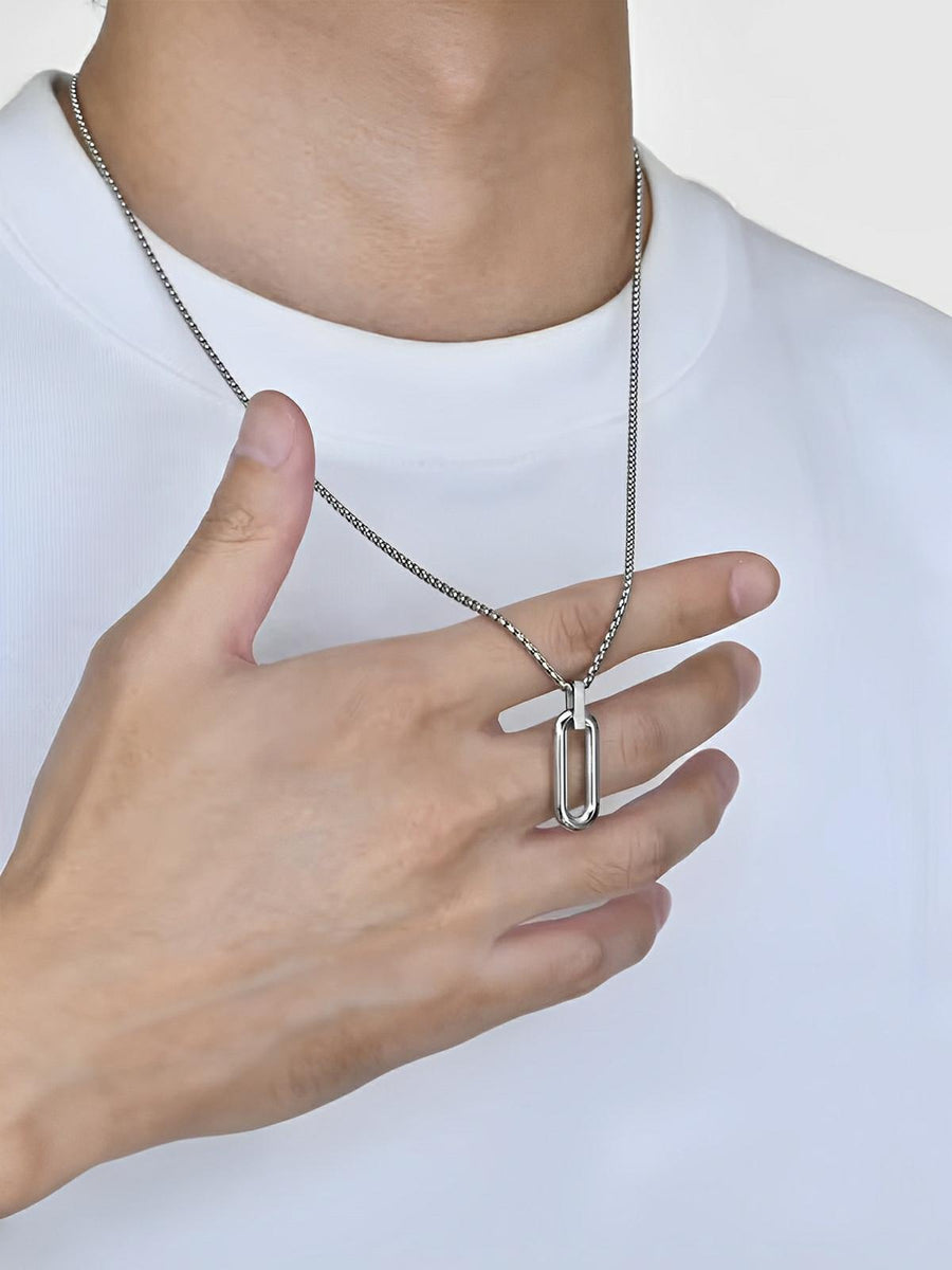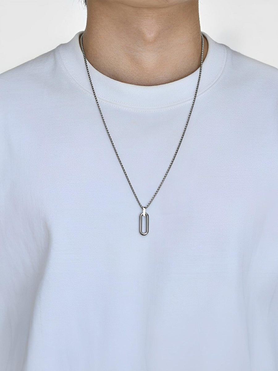 Collana con pendente ovale allungato, in acciaio inox, maglia veneziana, stile minimalista, modello Ilan