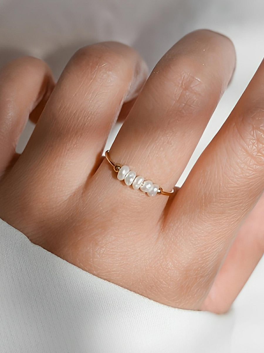 Anello donna in acciaio inox, perla barocca naturale, anello regolabile, gioielli in acciaio titanio, stile lusso leggero, modello Ilyana