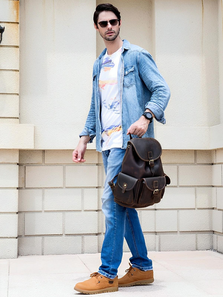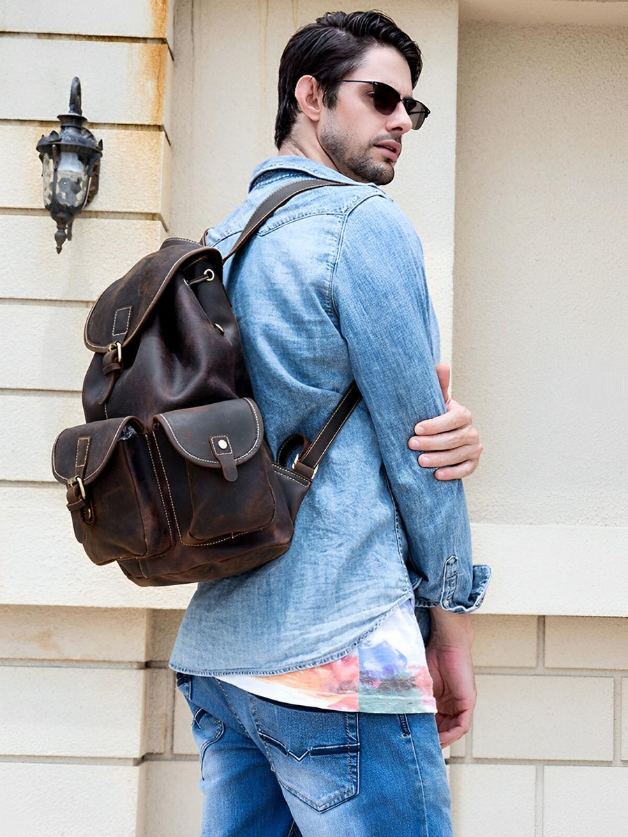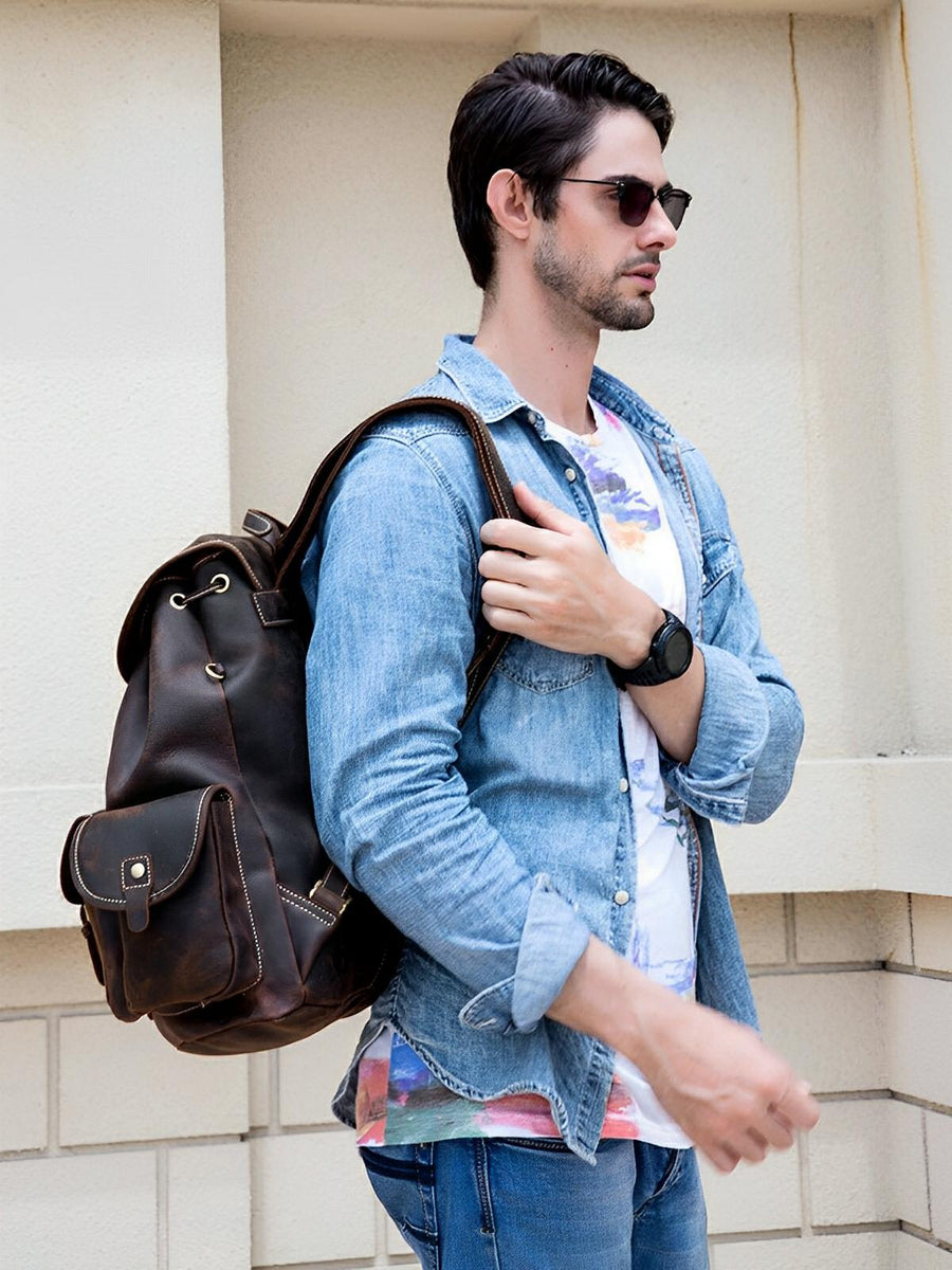 Scoprite questo zaino in pelle, pensato per gli uomini che cercano sia praticità che stile. Realizzato in pelle pieno fiore, questo modello offre grande resistenza e un’estetica vintage. L’ampio scomparto principale consente di trasportare un computer portatile fino a 14 pollici, libri, un tablet e altri oggetti essenziali. Le tasche esterne facilitano l’organizzazione dei piccoli accessori per un accesso rapido.