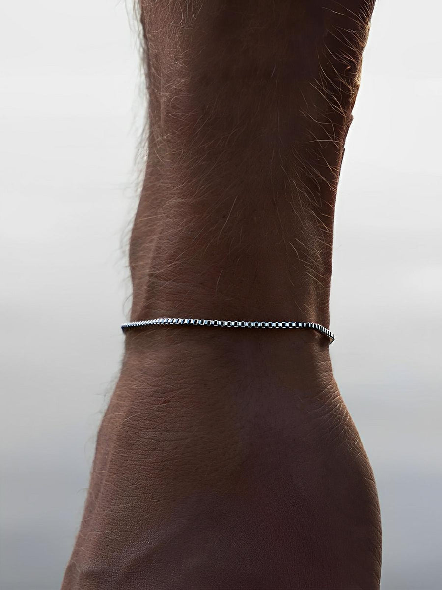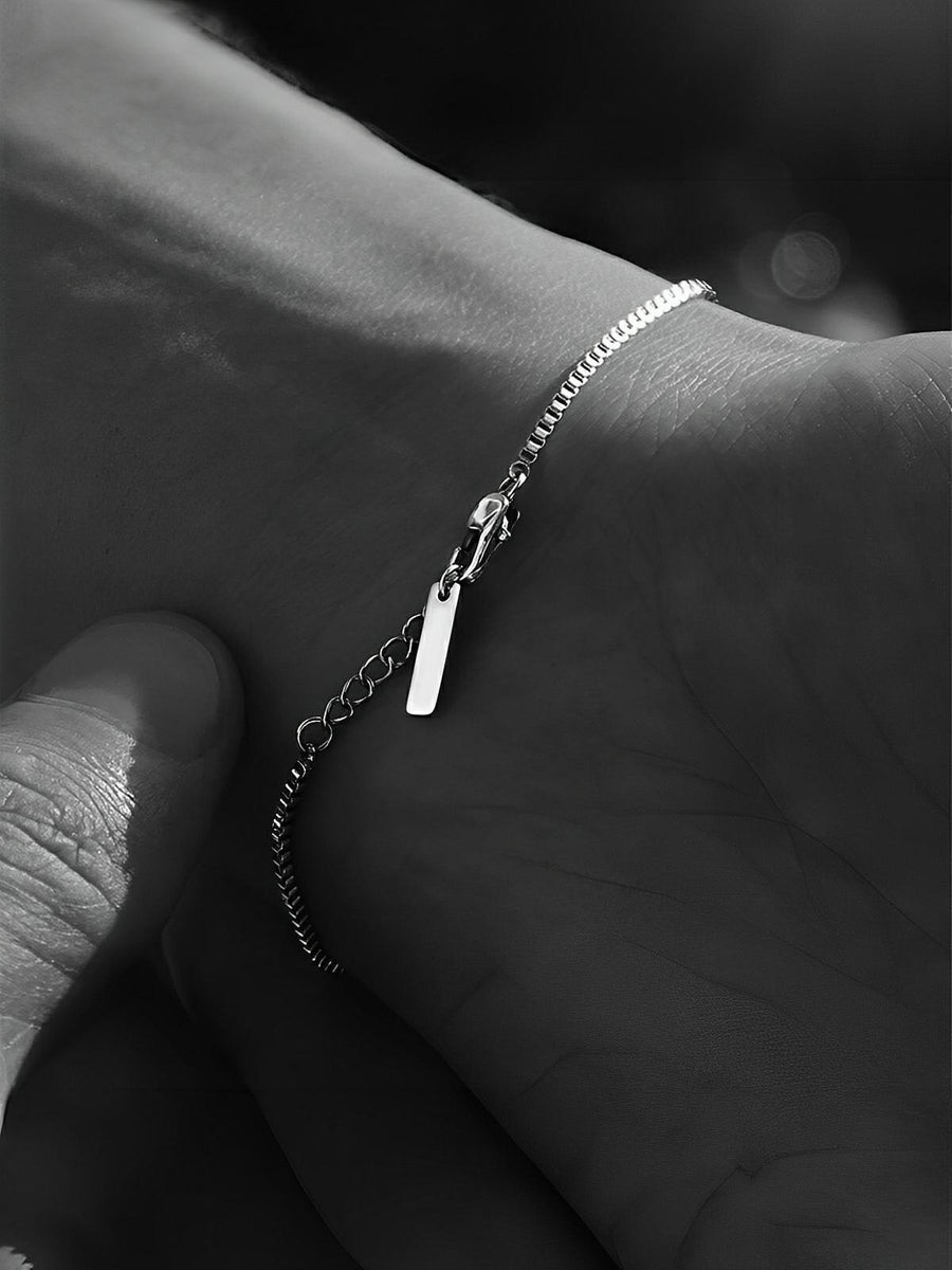 Questo bracciale in acciaio inossidabile 316L unisce robustezza e stile deciso. Con la sua maglia box discreta ma ricca di carattere, si rivolge agli uomini che desiderano accessoriare il proprio look con raffinatezza. Progettato per resistere all’uso quotidiano, questo bracciale è idrorepellente e non scolorisce grazie al suo rivestimento di alta qualità (oro 18K o platino a seconda della versione).