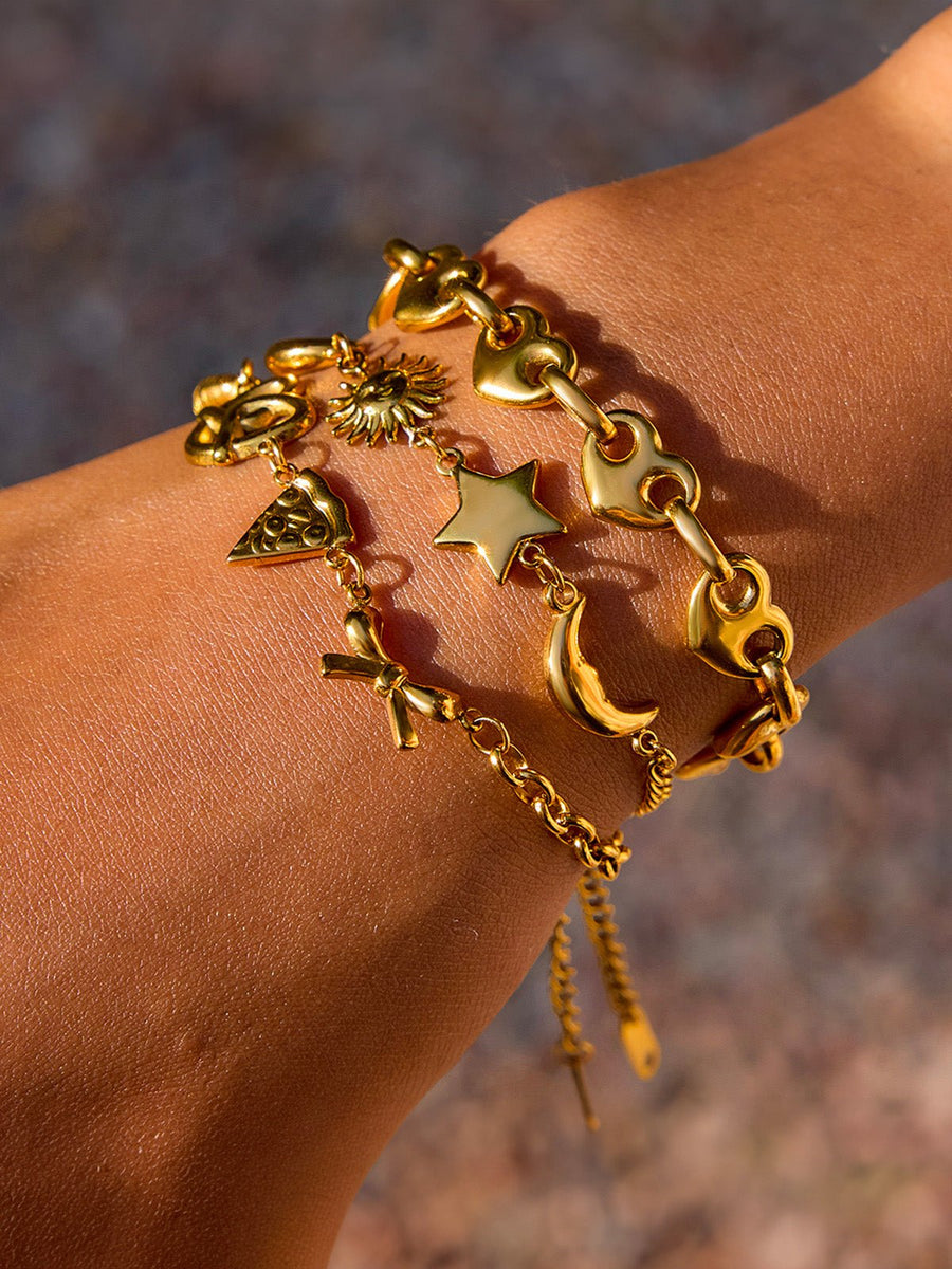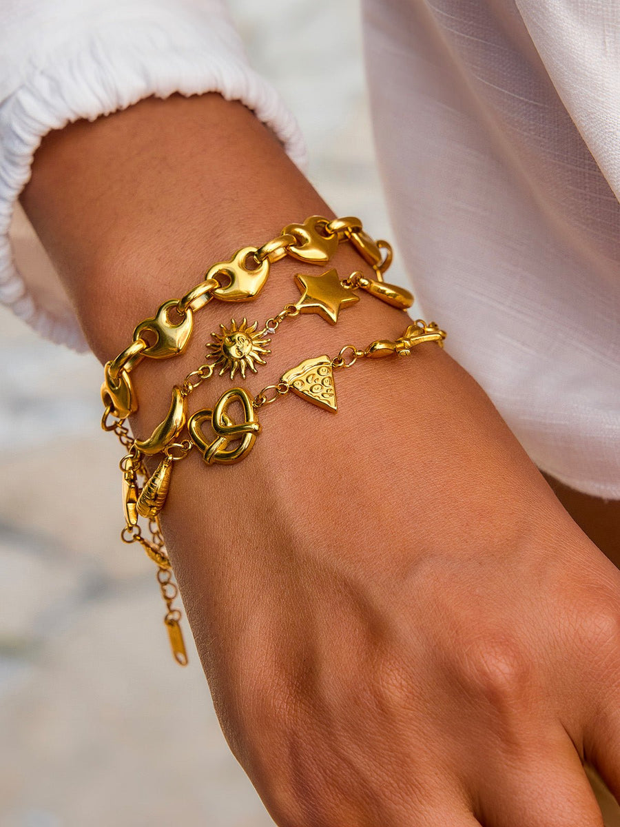 Bracciale dorato fantasia, ciondoli golosi, charms originali, acciaio inossidabile, catena regolabile, modello Jannah