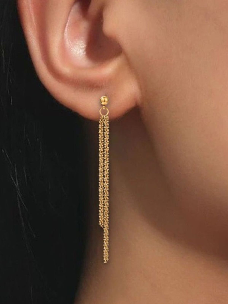 Progettati per le donne che amano il dettaglio che fa la differenza, questi orecchini a catena si indossano sia nella vita quotidiana che nelle occasioni serali. La loro resistenza all’acqua e all’ossidazione garantisce una tenuta impeccabile nel tempo, senza alterare la brillantezza dorata. Montati con cura, offrono un equilibrio sottile tra discrezione ed effetto visivo, risultando al tempo stesso ultra confortevoli.