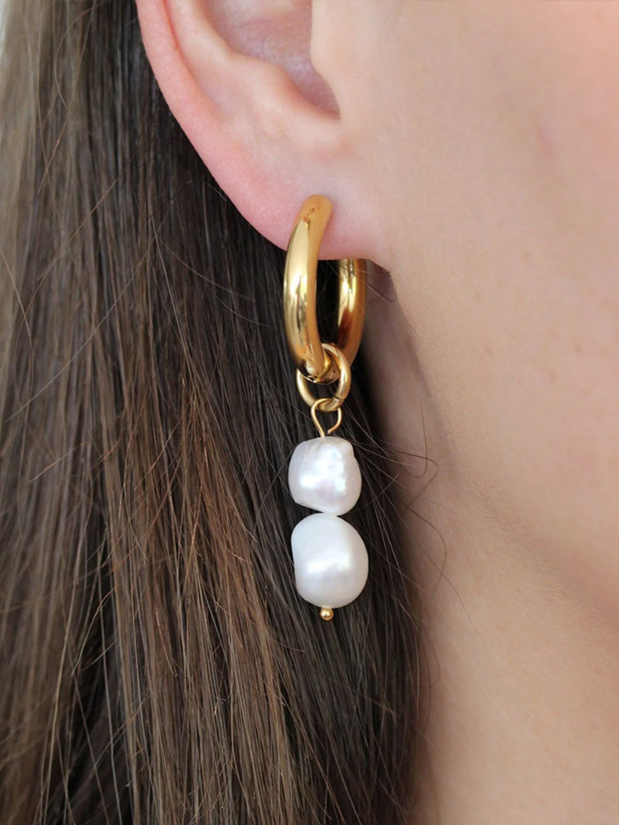 Lasciatevi conquistare dal raffinato tocco moderno degli orecchini con perle d’acqua dolce, pensati per chi desidera distinguersi con discrezione. Realizzati in acciaio inossidabile 316 di alta qualità, questi orecchini presentano una silhouette geometrica essenziale impreziosita da una placcatura in oro 18K resistente. Ogni paio integra una perla d’acqua dolce naturale che dona autenticità e luminosità al gioiello.