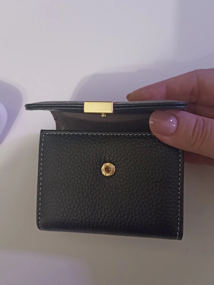 Questo portafoglio in vera pelle unisce compattezza e funzionalità. Progettato in un formato mini che si adatta al palmo della mano o alla tasca di un cappotto, è ideale per l’uso quotidiano o in viaggio.