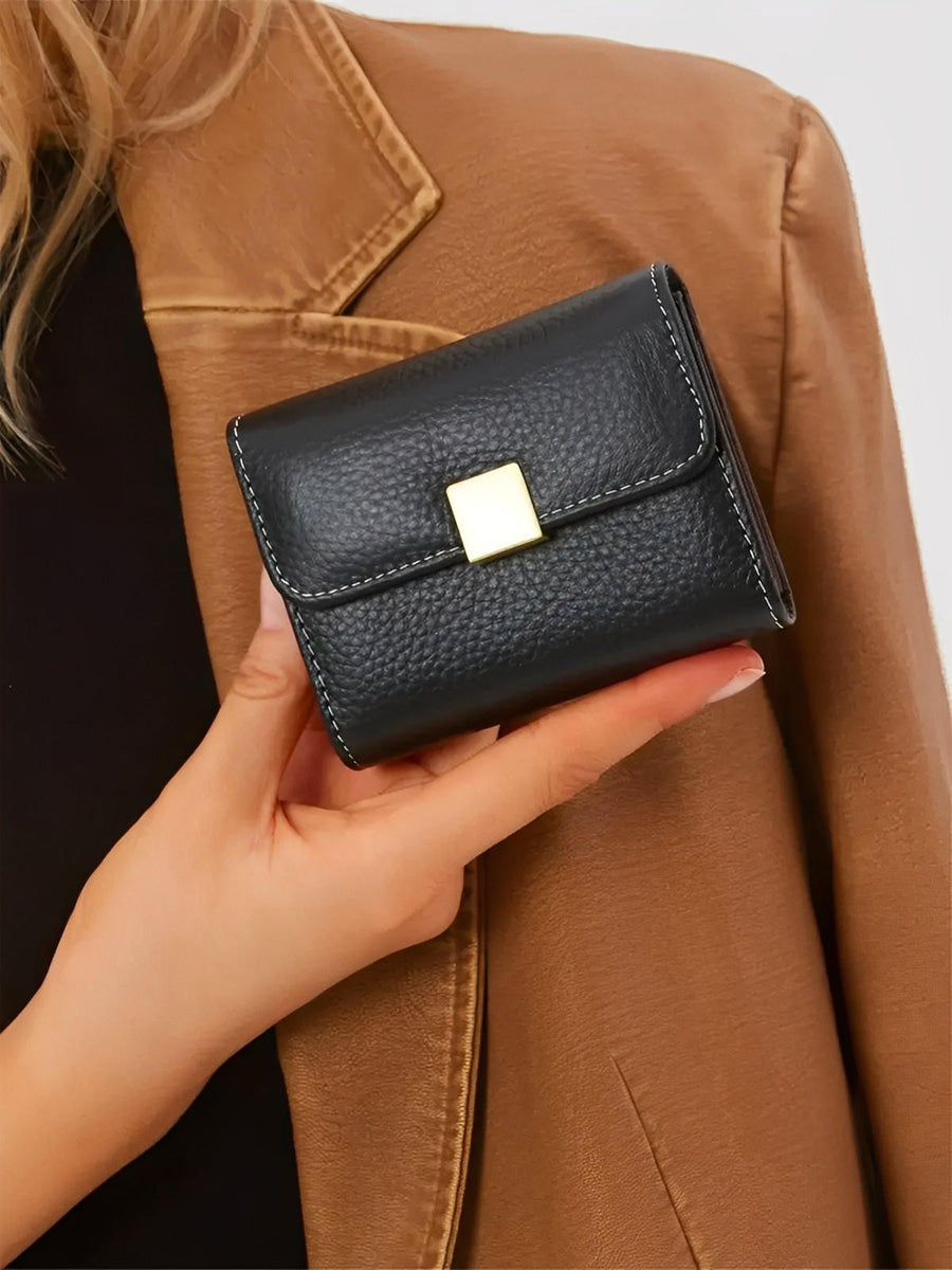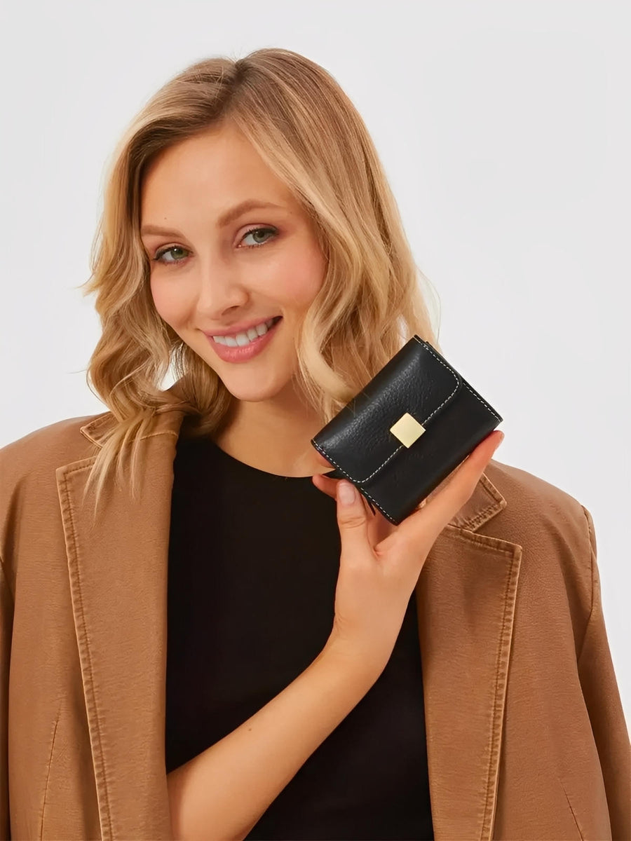 Portafoglio donna compatto in pelle martellata, portacarte sicuro, formato mini, bottone a pressione dorato, scomparto a fisarmonica, modello Judith
