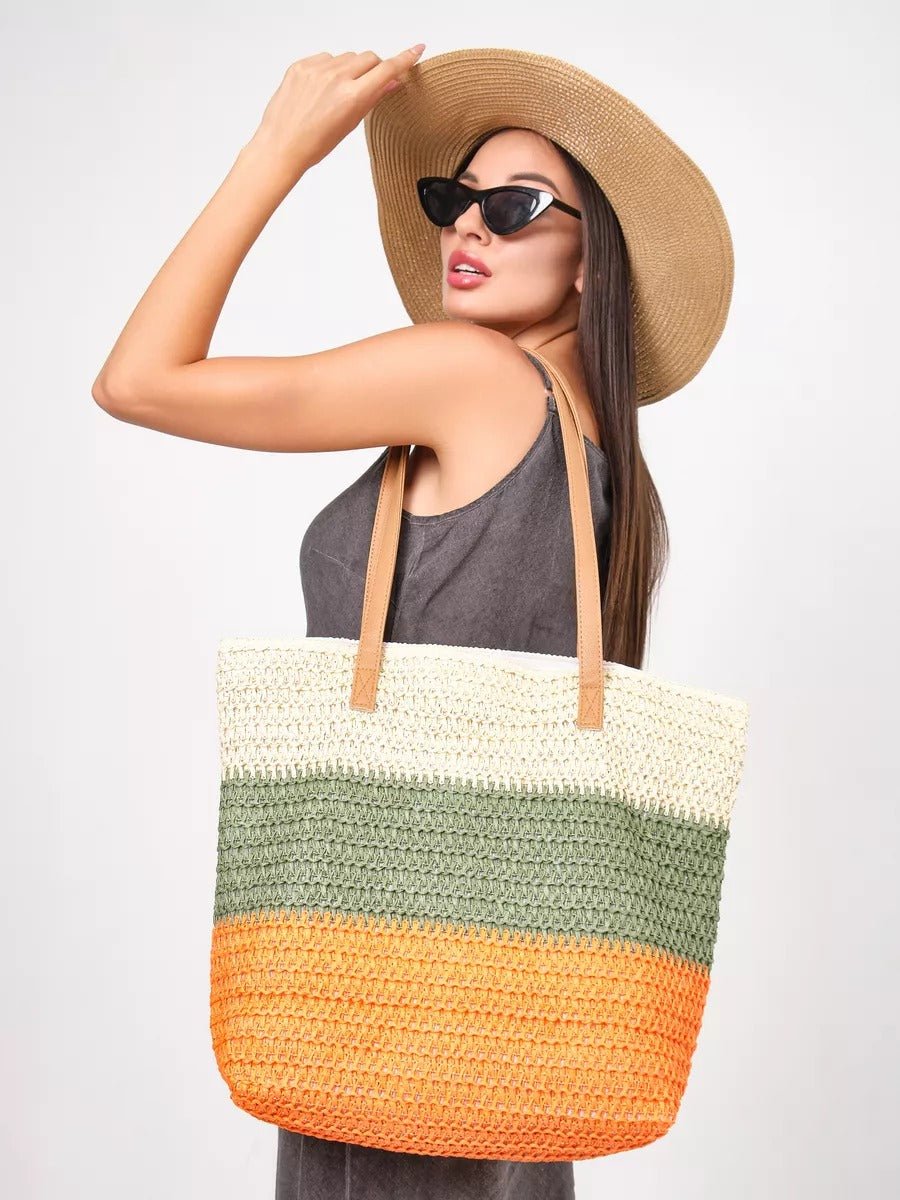 Borsa da spiaggia cabas, paglia rafia multicolore, grande formato, spiaggia, estate, manici similpelle vegan, tote bag vacanze, modello Julie